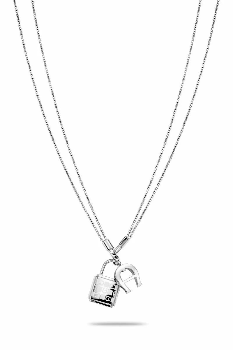 The Aigner ladies short necklace is a sophisticated and elegant piece of jewelry designed for modern women. The necklace is made of high-quality stainless steel, giving it a sleek and durable finish. The steel silver color adds a touch of sophistication and can complement a variety of outfits. One of the main features of this necklace is the A-logo pendant which is the brand's signature design. The pendant is a symbol of luxury and class, and it adds a touch of glamour to the overall look of the necklace. The pendant is accompanied by a lock, adding an element of security to the necklace while also giving it a unique and stylish touch.  The Aigner ladies short necklace steel silver is a versatile and stylish piece of jewelry that can be worn for both casual and formal occasions. Its unique design, high-quality material, and brand recognition make it a valuable addition to any jewelry collection.