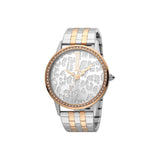 Just cavalli ladies watch silver rose gold case with stone silver animal print dial silver rosegold bracelet