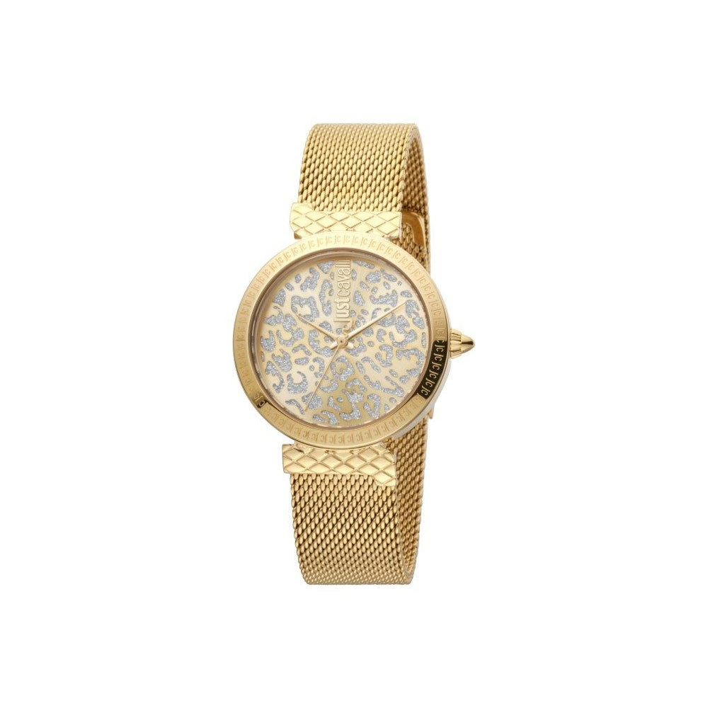 Just Cavalli Ladies Watch Animal Print Dial With Ip Gold Mesh Bracelet