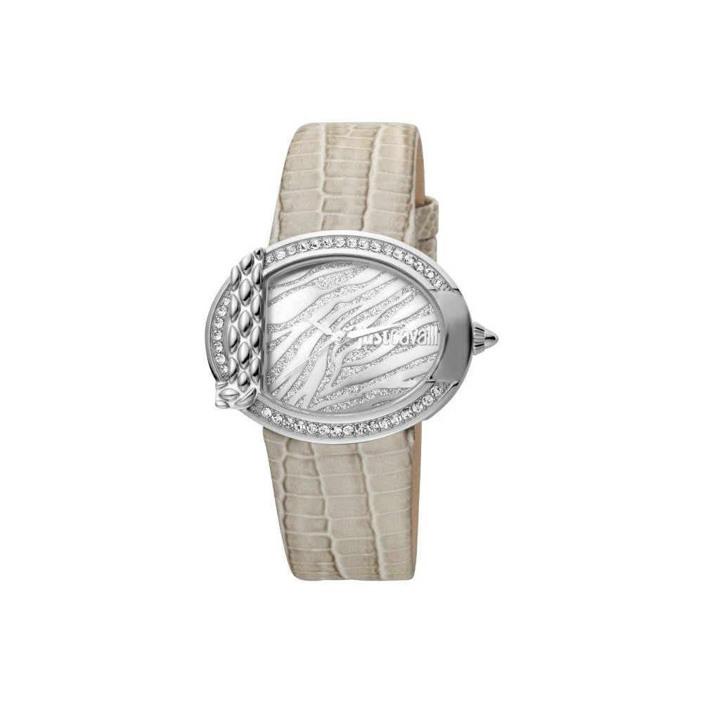 Just Cavalli Ladies Watch Animal Print Dial With Stone Ivory Color Leather Strap