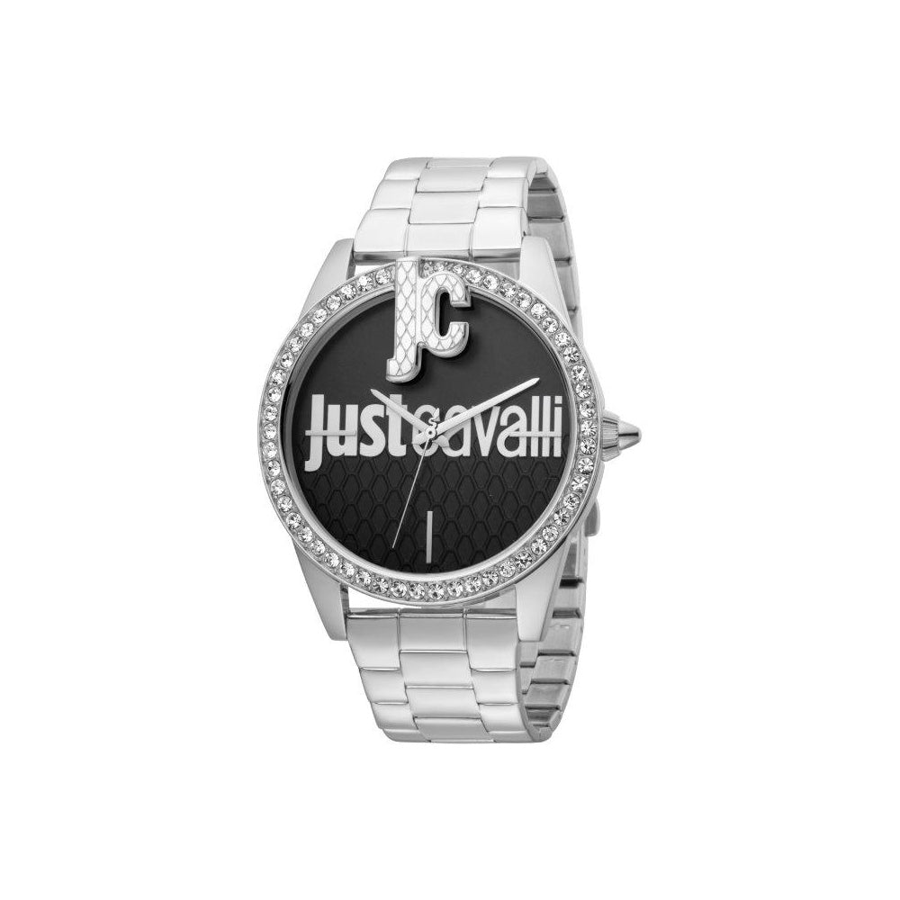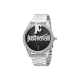 Just cavalli ladies watch silver case with stone black dial silver bracelet