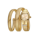 Just cavalli ladies watch gold case gold dial two round snake bracelet with stone