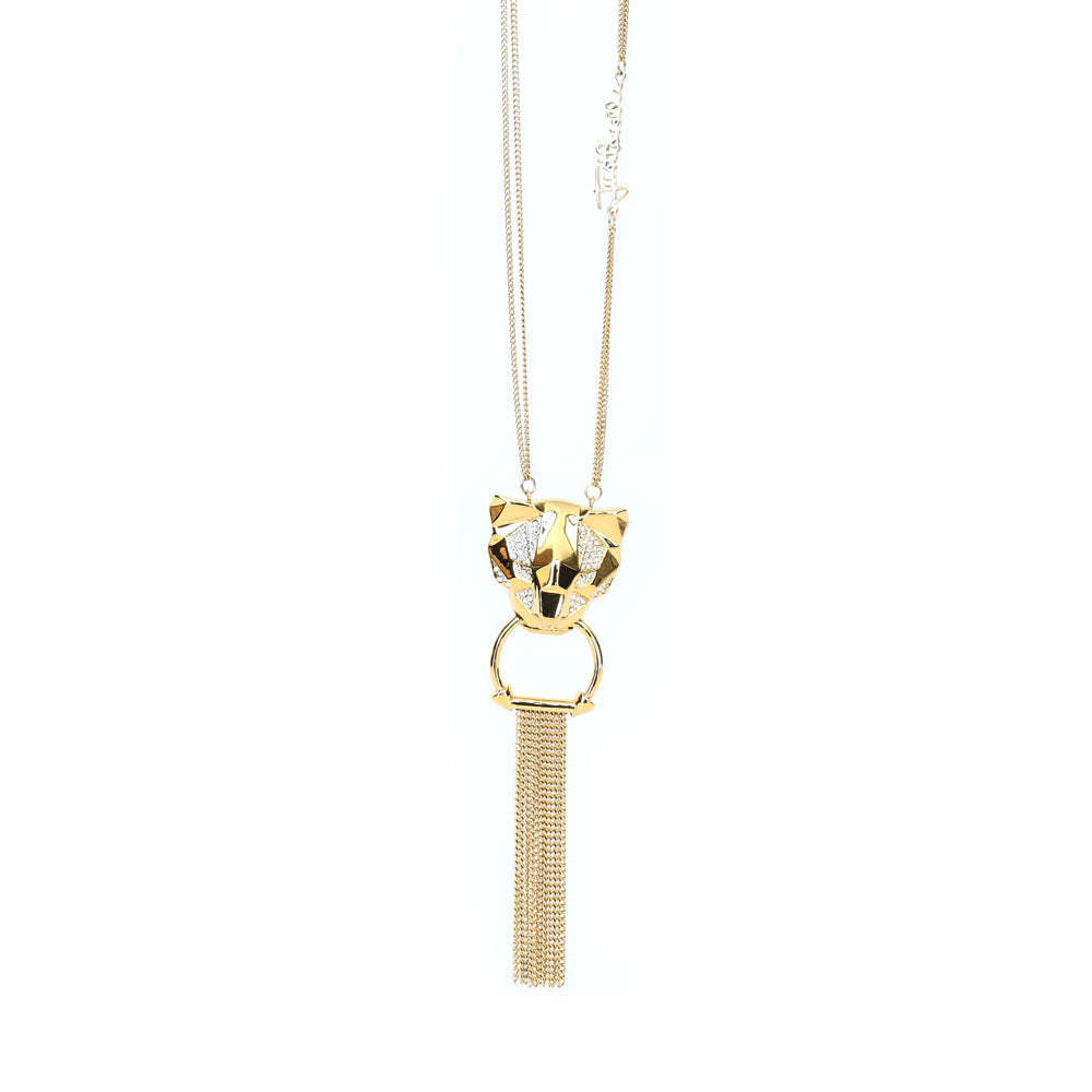 Just Cavalli Fashion Accessories Necklace Gold with Tiger Head with Stone Pendant & Dangling Style