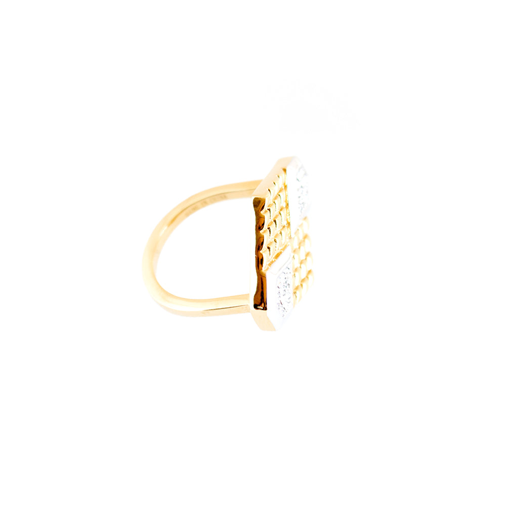 Just Cavalli is a fashion brand known for its avant-garde and bold designs. Their fashion accessories are no exception, and this can be seen in their ring that features a combination of IP gold and silver with a diamond shape and embellished with stones. The silver diamond shape adds a touch of elegance to the design, making it a versatile piece that can be worn both as a statement accessory or for everyday wear. The clear stones further enhance the luxurious look of the ring, adding a touch of sparkle and glamour. The combination of gold and silver in this ring creates a striking contrast and adds a modern twist to a classic shape. It is a perfect accessory for those who appreciate bold and unconventional fashion choices. The Just Cavalli fashion accessories ring combines high-quality materials with a unique design, making it a must-have for anyone looking to add a touch of avant-garde to their fashion statement. It is a perfect accessory to elevate any outfit and make a bold fashion statement. SPECIFICATIONS