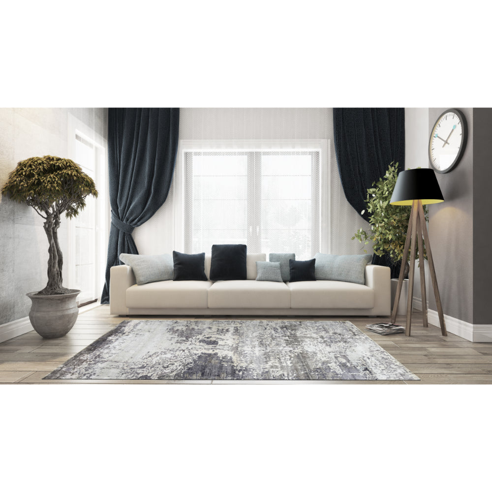 The Khansa Riviera Carpet is a luxurious and high-quality carpet that is hand-knotted from 100% viscose and bamboo silk. It has a large size of 243x170cm, making it the perfect statement piece for any room. The design of the carpet is unique and eye-catching, creating the illusion of movement with its intricate patterns and subtle color changes. This makes it a perfect fit for both contemporary and classical interiors. The materials used in making this carpet, namely viscose and bamboo silk, are known for their soft and silky texture. This makes the carpet incredibly soft to touch and adds a touch of luxury to any space. Additionally, these materials are also durable and easy to maintain, making the Khansa Riviera Carpet a long-lasting investment. The intricate design of the carpet is achieved through a traditional hand-knotting technique, which ensures the highest level of craftsmanship and attention to detail. The Khansa Riviera Carpet is perfect for adding a touch of elegance and sophistication to any room. It can be used as a statement piece in a living room or bedroom, or as a focal point in a hallway or entryway. The Khansa Riviera Carpet is a beautifully designed and intricately handcrafted carpet that adds a touch of luxury and style to any space. Its soft texture, durable materials, and versatile design make it a must-have for those looking to elevate their home decor. SPECIFICATIONS