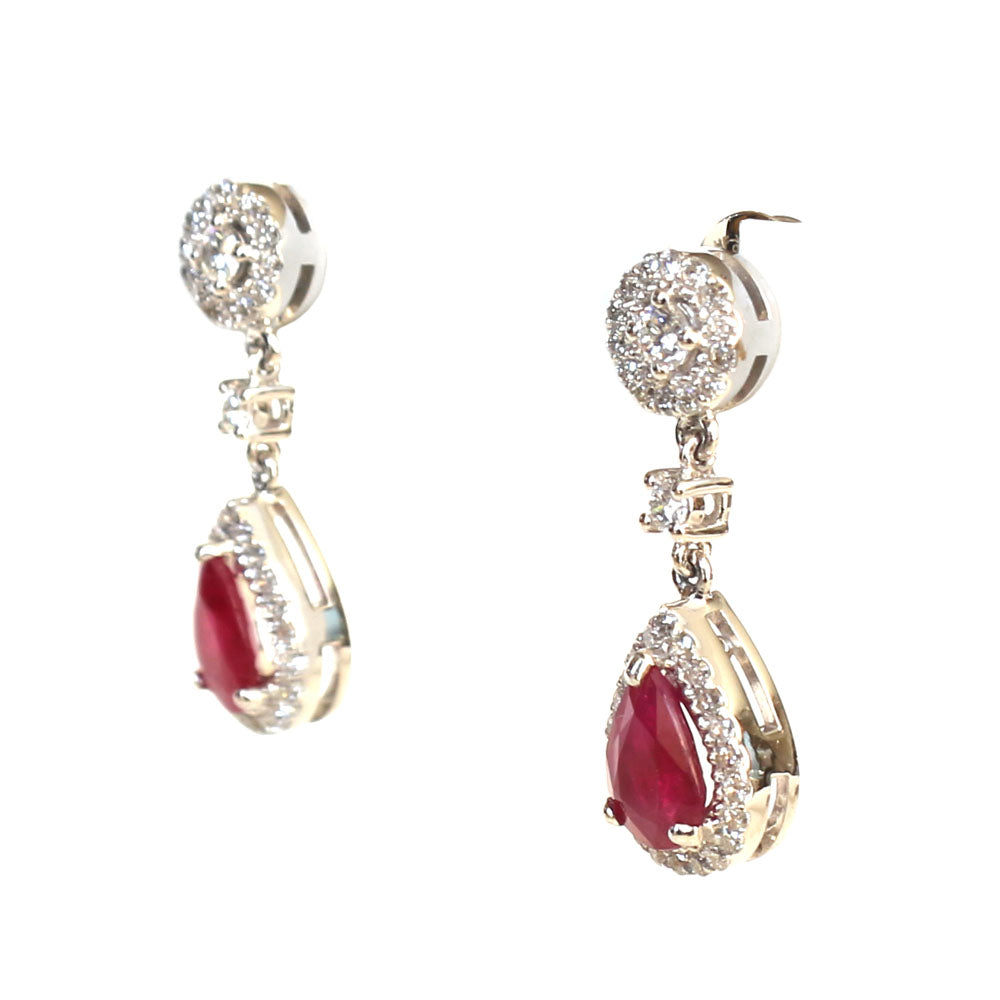 Earring 18 Carat White Gold WT Grams 3.56 with Diamond Wt ct. 0.53 & Ruby Stone 1.19 / Total Weight 3.90