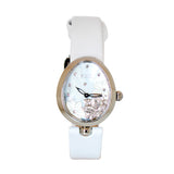 | Korloff Ladies Stainless Steel Watch is a high-end luxury watch designed for sophisticated women. It features a stainless steel case, which is known for its durability and strength, making it a long-lasting timepiece. The watch also boasts a stunning mother of pearl dial adorned with sparkling diamonds, adding a touch of elegance and glamour to the overall design. One of the standout features of this Korloff watch is its unique 3D flower design on the dial, making it a beautiful and eye-catching piece of jewelry. The intricate detail and craftsmanship design make it a true work of art that is sure to impress. In addition, the watch comes with a white alligator leather strap, enhancing the luxurious look of the timepiece. The strap is also comfortable to wear and adds a touch of femininity to the overall design. The watch is secured with a sapphire crystal, a highly scratch-resistant material that protects the dial from any damage. The Korloff Ladies Stainless Steel watch is a perfect combination of style, sophistication, and functionality. It is a must-have accessory for any woman who wants to make a statement and add a touch of luxury to her outfit. SPECIFICATIONS • Brand: Korloff • Gender: Women • Features a durable and strong stainless steel case • Stunning mother of pearl dial adorned with diamonds • Unique 3D flower design on the dial adds elegance and glamour • Intricate detail and craftsmanship make it a work of art • Comes with a white alligator leather strap for added luxury • Sapphire crystal for added scratch resistance • Perfect combination of style, sophistication, and functionality • Must-have accessory for any woman looking to make a statement About Brand Korloff is a high-end luxury brand that specializes in perfumes, jewelry, and accessories. Founded in 1978 by Daniel Paillasseur, the brand takes its name from the famous Russian diamond, "Korloff Noir". The brand is known for its unique and avant-garde designs, using a combination of precious stones and high-quality materials. Their perfumes, in particular, are a popular choice among celebrities and high-profile individuals. Since its inception, Korloff has expanded into over 70 countries and has become a symbol of elegance and opulence. The brand's signature is the use of the Korloff diamond on its products, which symbolizes the brand's commitment to luxury and excellence. |