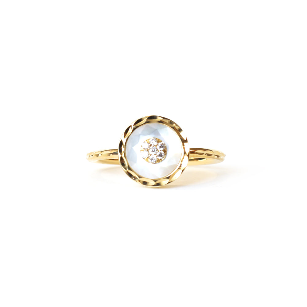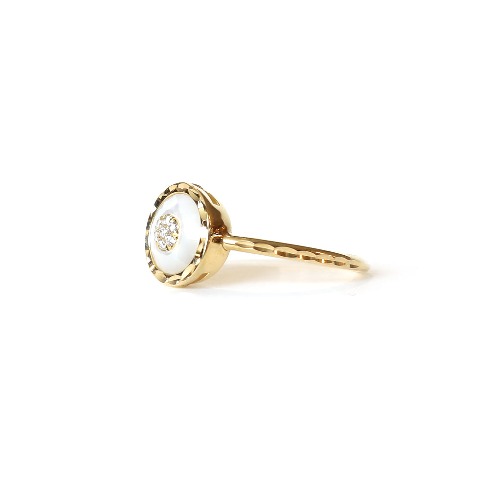 Ring 18 carat 3.12 Yellow gold with diamond 0.04 Gvs & mother of pearl 0.29 Blanc