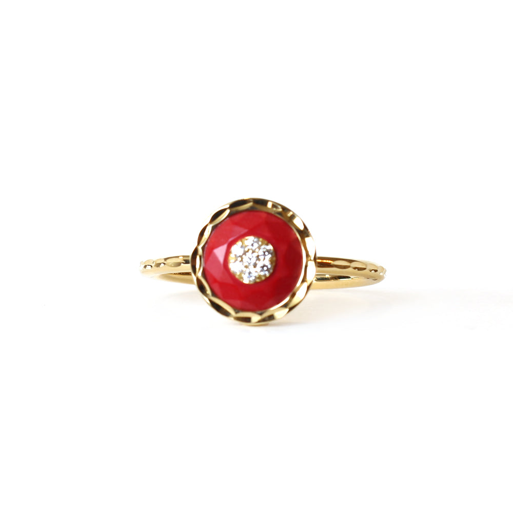 Ring 18 carat 3.12 Yellow gold with diamond 0.04 Gvs & coral paste 0.22 Rouge