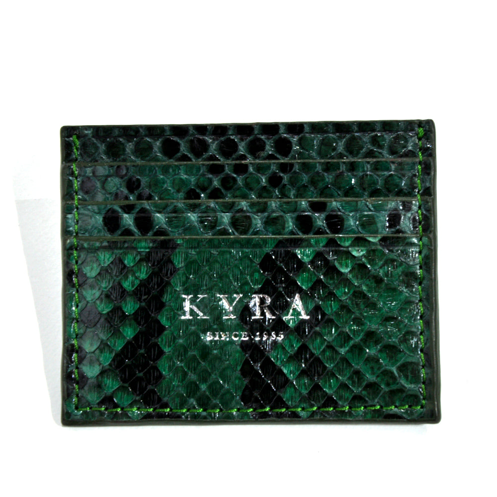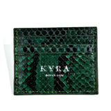 Card holder in green color,handcrafted wallet, made from genuine snakeskin python of high quality. Very soft, durable, exotic and attractive piece of art. Luxury piece,printed logo on the front and multifunctional pockets on either side and an additional center pocket for added.