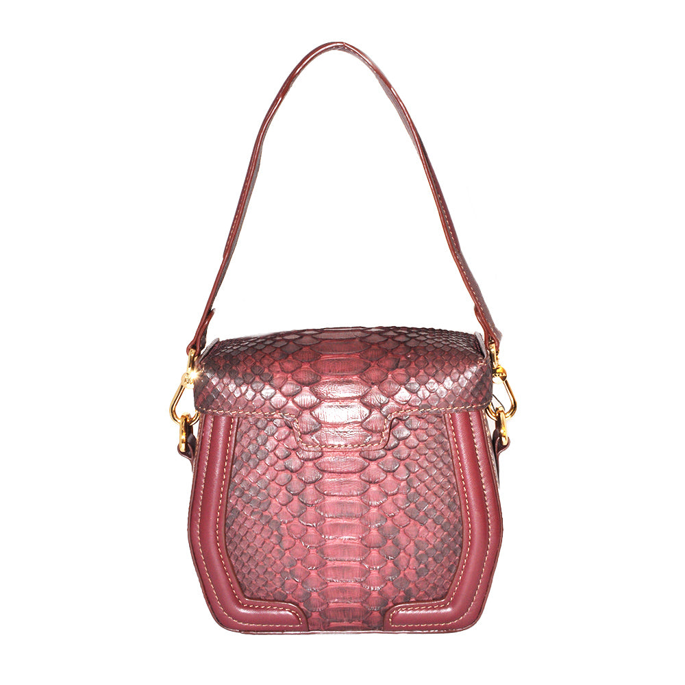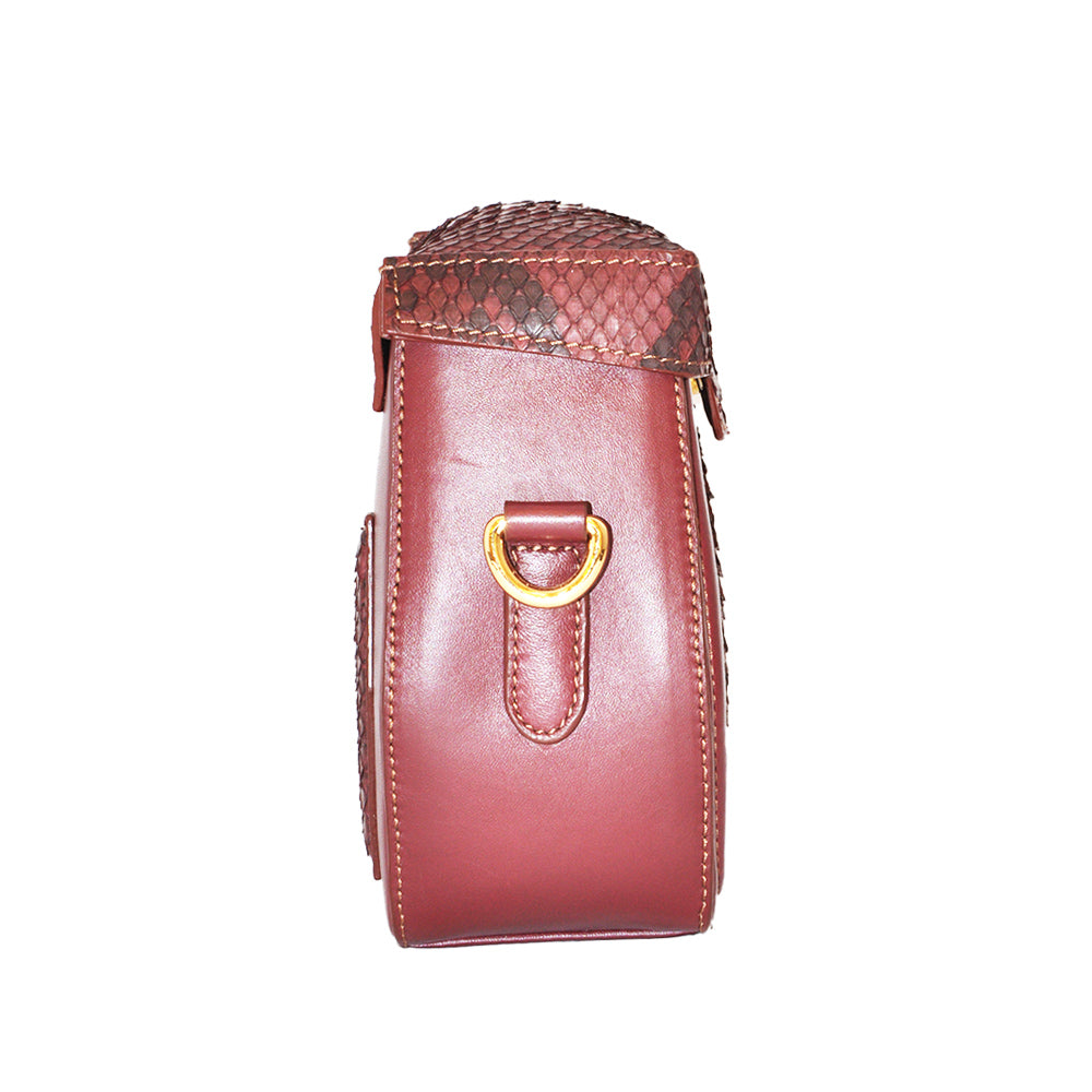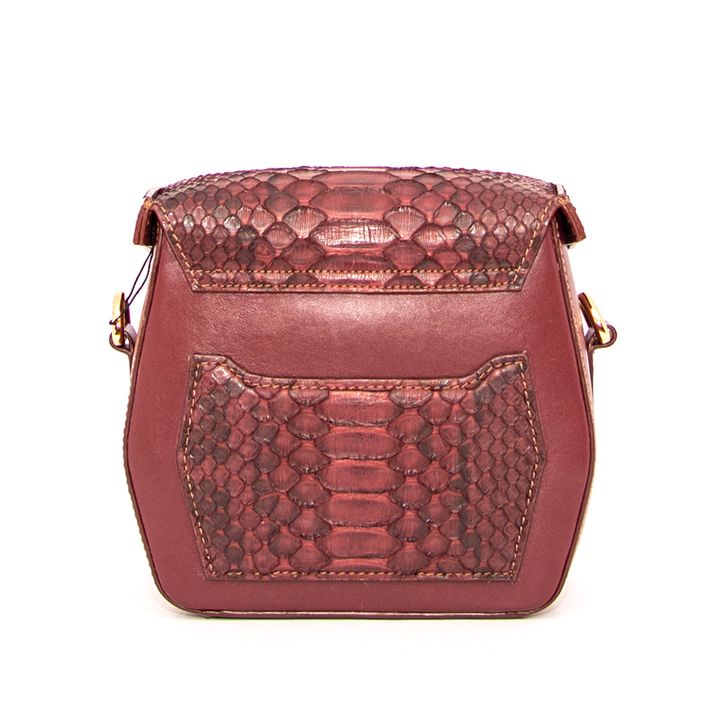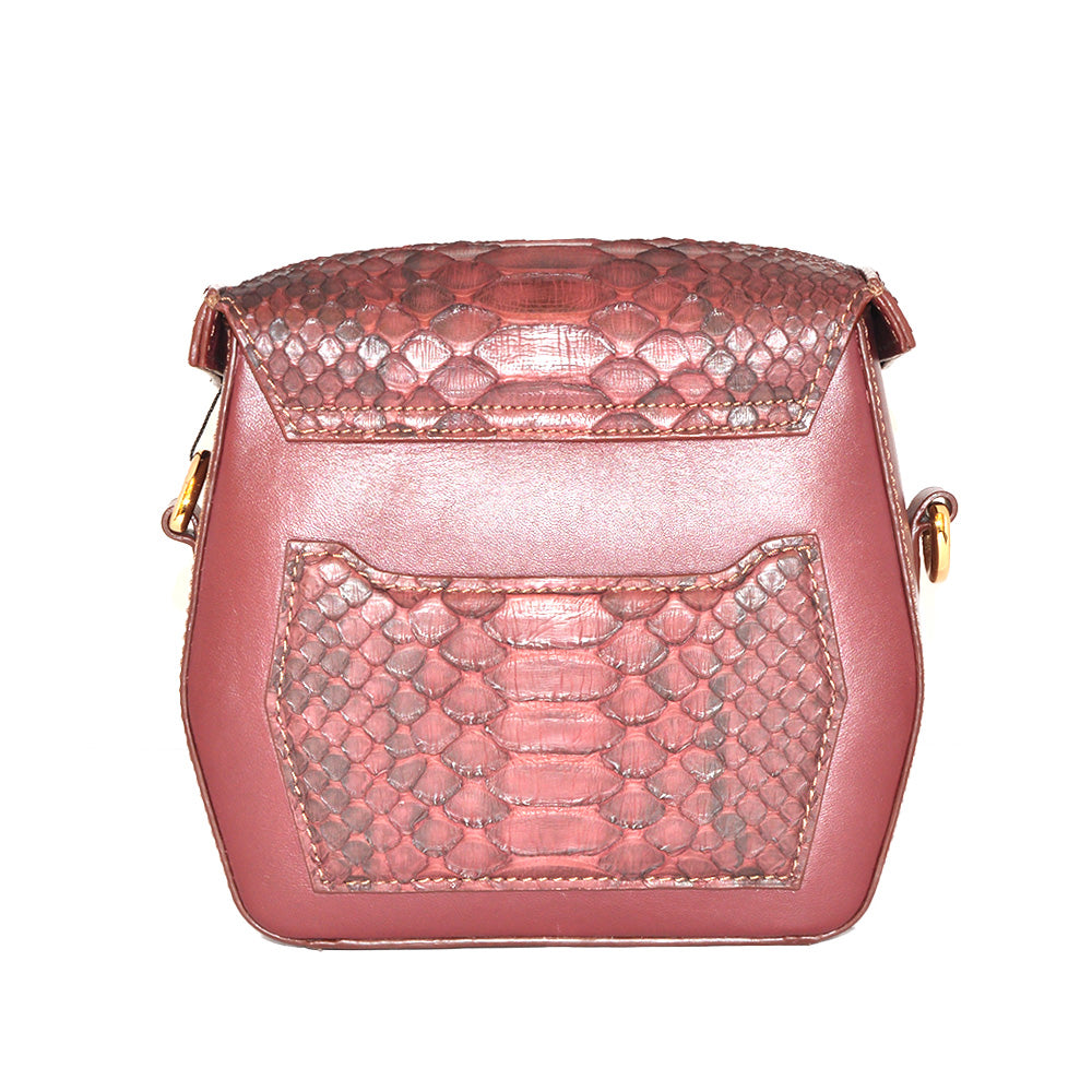 Unique hexagonal shape with distinguished closure, inspired by the shape of cable cars in Grindelwald, Switzerland. Sophisticated in burgundy color , roamy and multi function. Wear it with short strap like fashionistas, or swap with longer strap for more casual occasions.