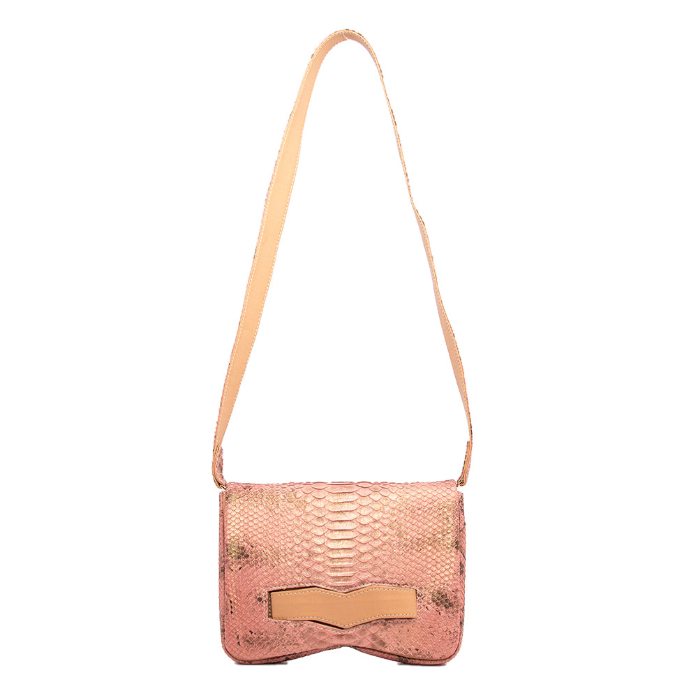 Let Me Talk bag on rose gold color has a handy design with lot of space inside, it can be your travel bags and it has a strap. With a modern artistic design, the exotic leather also support for a stylish and luxury in one time. It’s easy to brings and lovely clutch are really fit for travelling cause it has a spacious inside in classy design, a handgrip that looks like a lips makes Let Me Talk more esthetically.