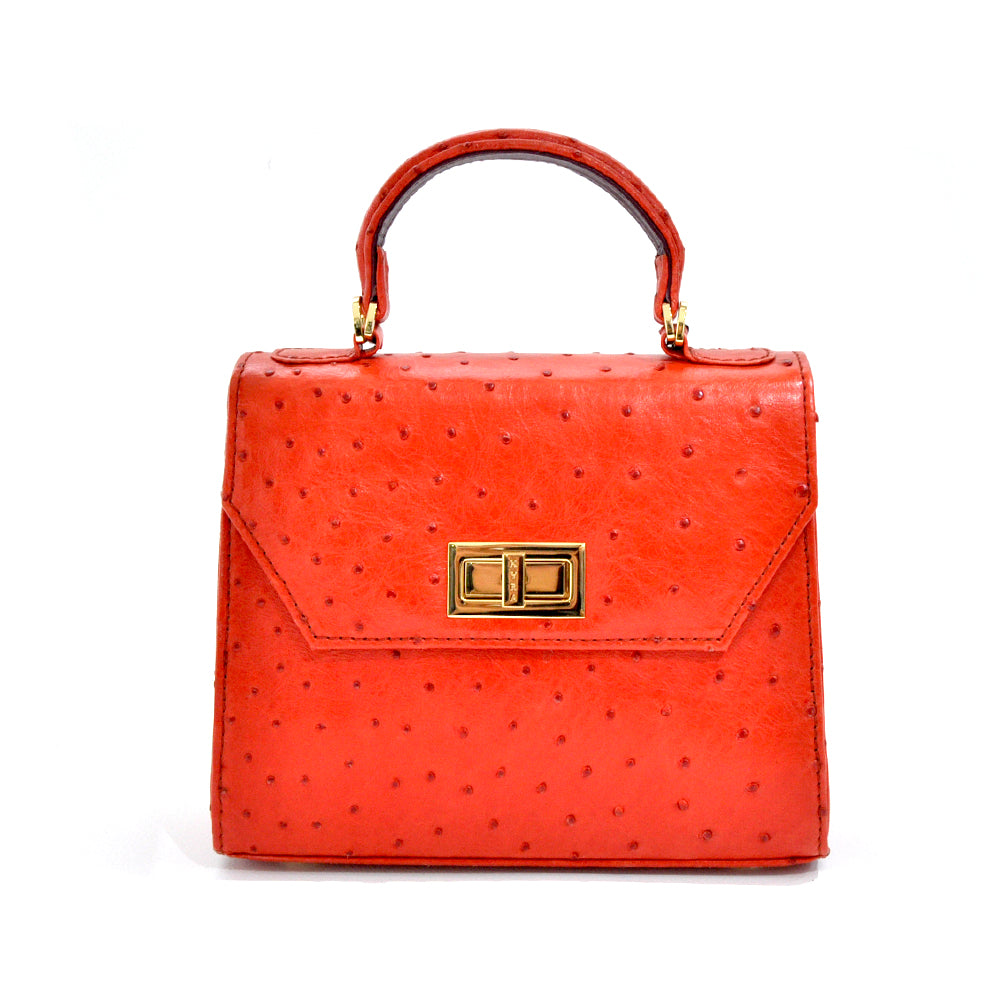 Luna on solid orange color is a boxy structured bag with simple elegant sling or shoulder bag, a strong medium bag that can refresh your outfit. This beauty is crafted from red ostrich skin that is distinctly identified from its pores and is complemented by gold hardware.A strong closure with KYRA signature lock that will protect the whole things inside your bags. Perfect to use for casual and special occasion.