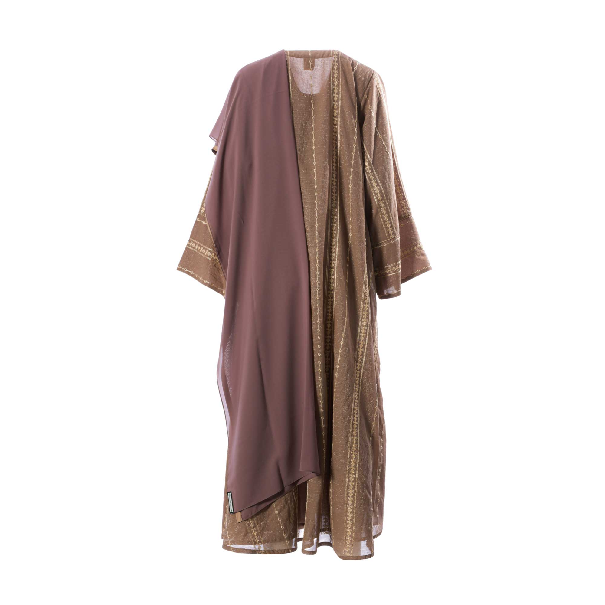The Lamar Women's Brown Abaya is a beautiful garment crafted from luxurious premium fabric. The Abaya is full length and features a stylish front closure. The Abaya is decorated with intricate golden thread embroidery all over for a touch of elegance. The Abaya comes with a matching scarf, making it a complete and stylish ensemble. It is also designed with a flared silhouette that gives it a chic and flattering fit. Perfect for any special occasion, the Lamar Women's Brown Abaya is sure to turn heads wherever you go. SPECIFICATIONS: