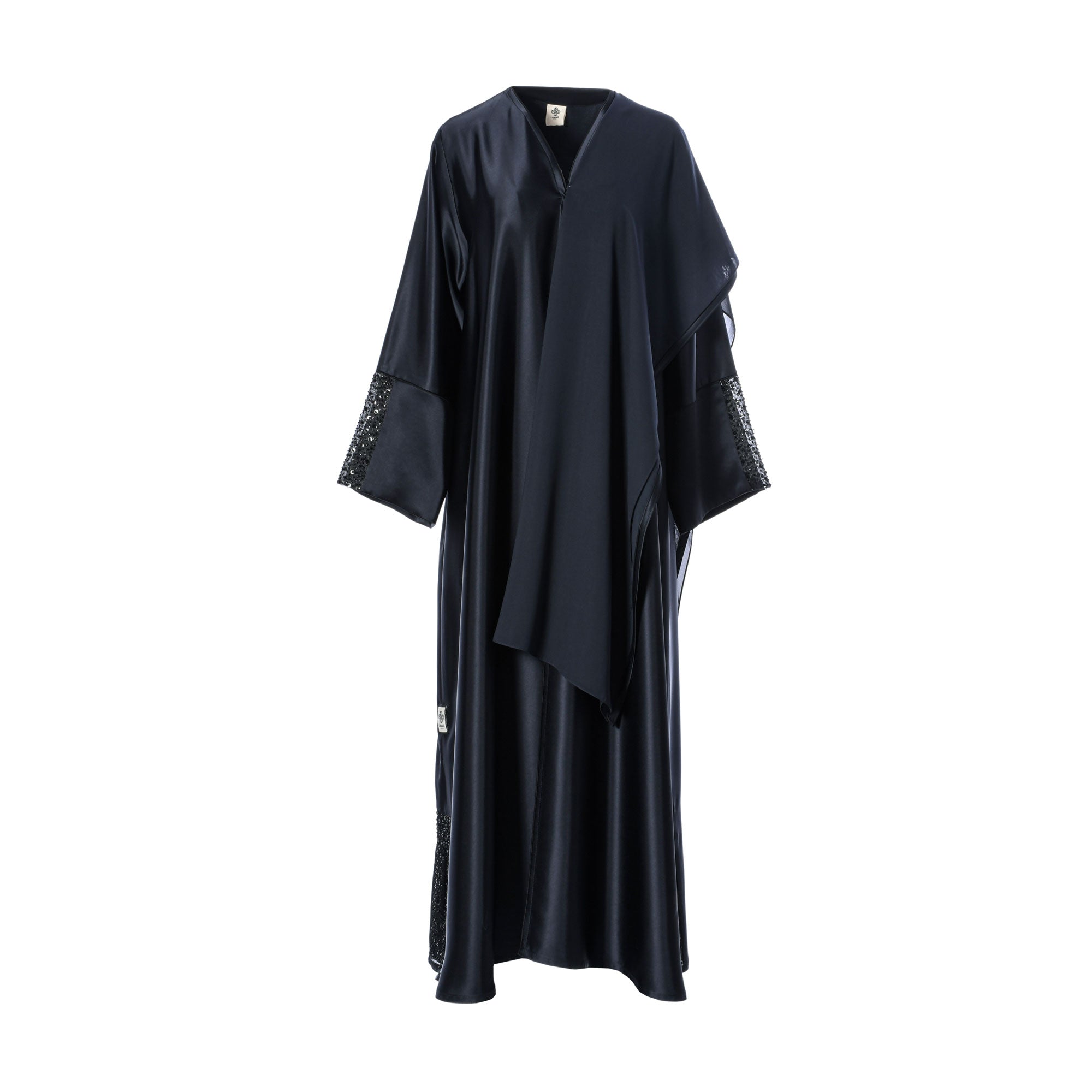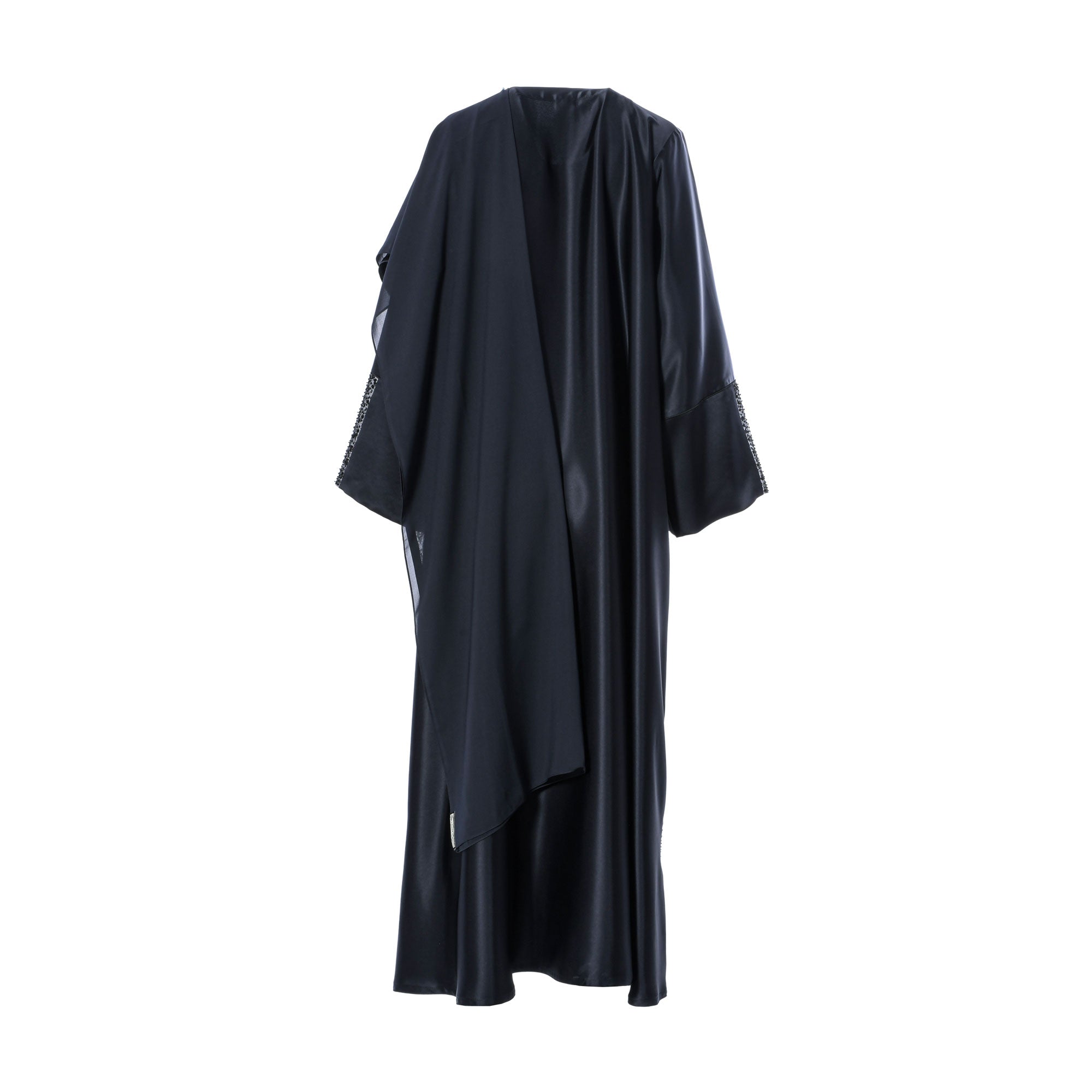 • The Lamar Women's Black Abaya is crafted from luxurious silk fabric