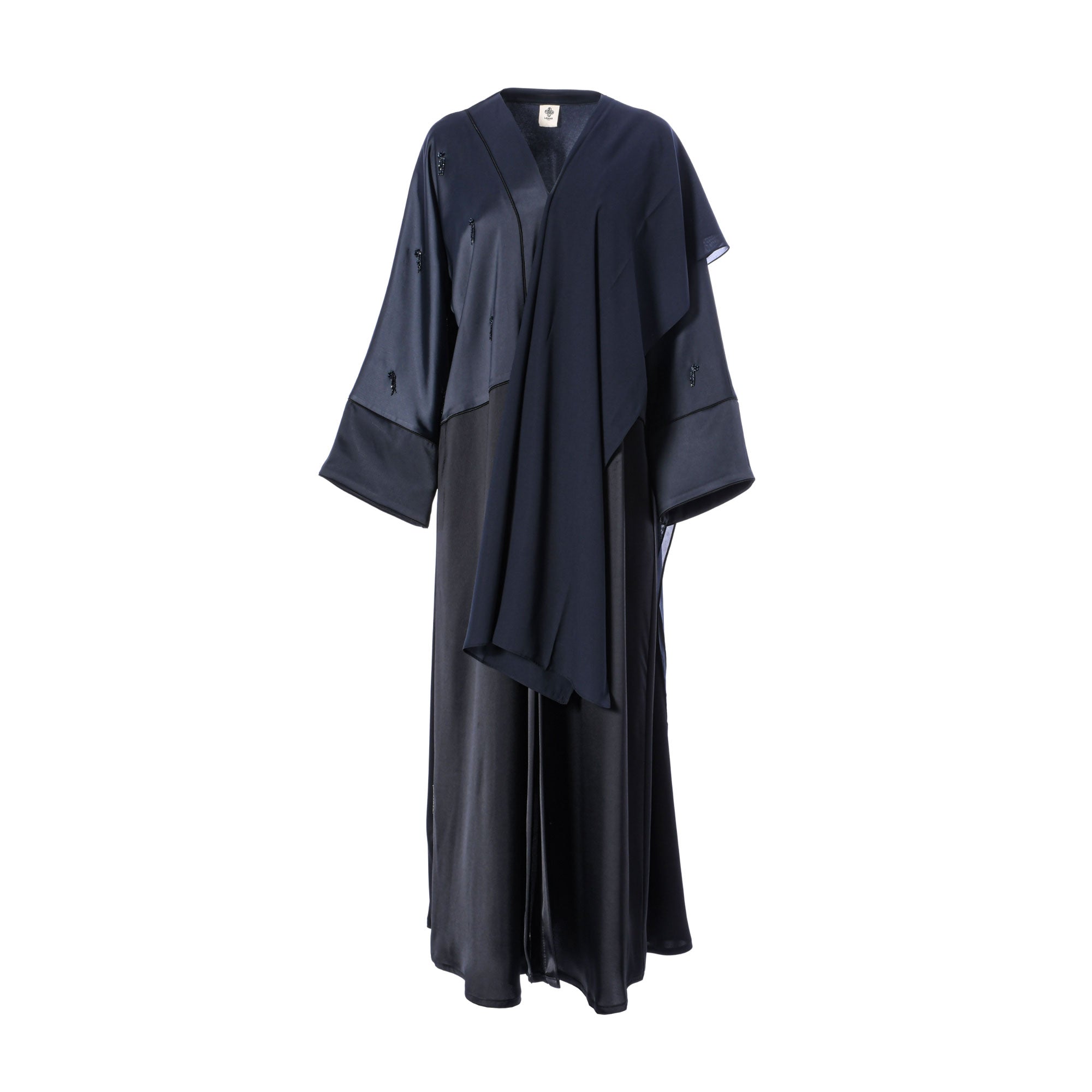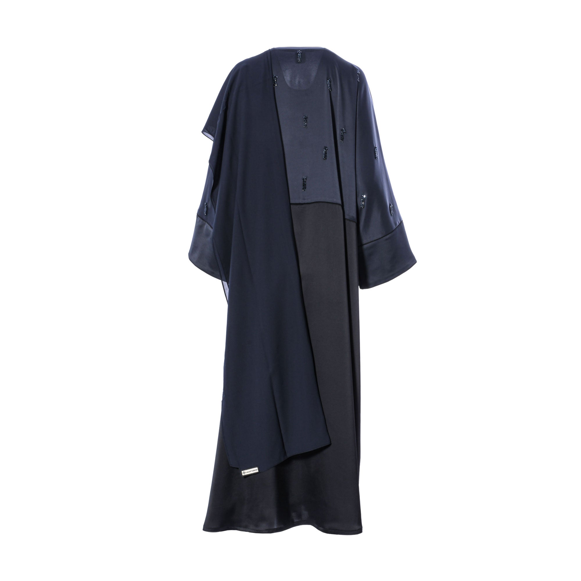 The Lamar Women's Black & Grey Abaya is a stylish and sophisticated look that is perfect for any occasion. This abaya is made from a premium quality fabric, giving you a luxurious feel that is sure to make you stand out. It features intricate sequins embroidery to the front , back and sleeves, giving it a unique and beautiful look. The abaya comes with a matching scarf, making it a complete look. It is full length and has a front closure, with long loose sleeves. It is sure to be a showstopper, and will keep you looking chic and fashionable. SPECIFICATIONS: