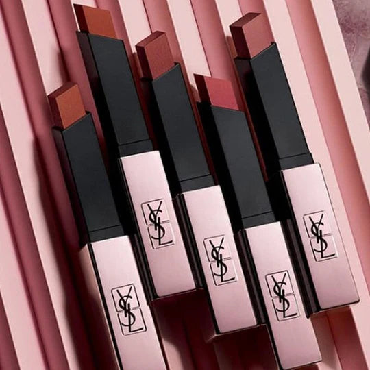• Yves Saint Laurent Rouge Pur Couture The Slim Glow Matte Lipstick delivers a luminous matte finish with a subtle, radiant glow.