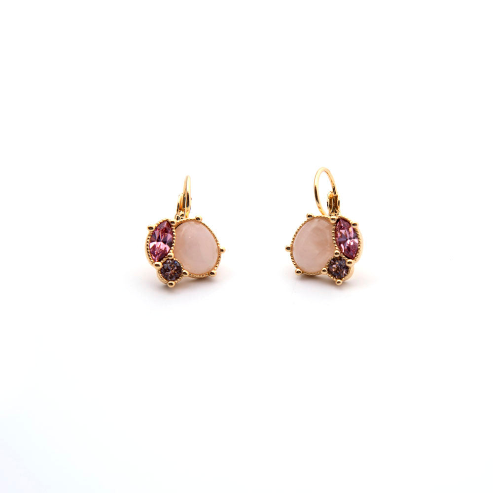 Elegantly Discreet And Absolutly Eye-Catching... So Is The Ambiguity Of These Unique Dormeuses Earrings With Quartz And Pink Rhinestones. This Pair Of Costume Jewelry Dormeuses Earrings ' Setting Is Made Up Of Brass, Gilded With 18 Karat Gold, And Features Two Rhinetsones And A Pink Quartz Stone.