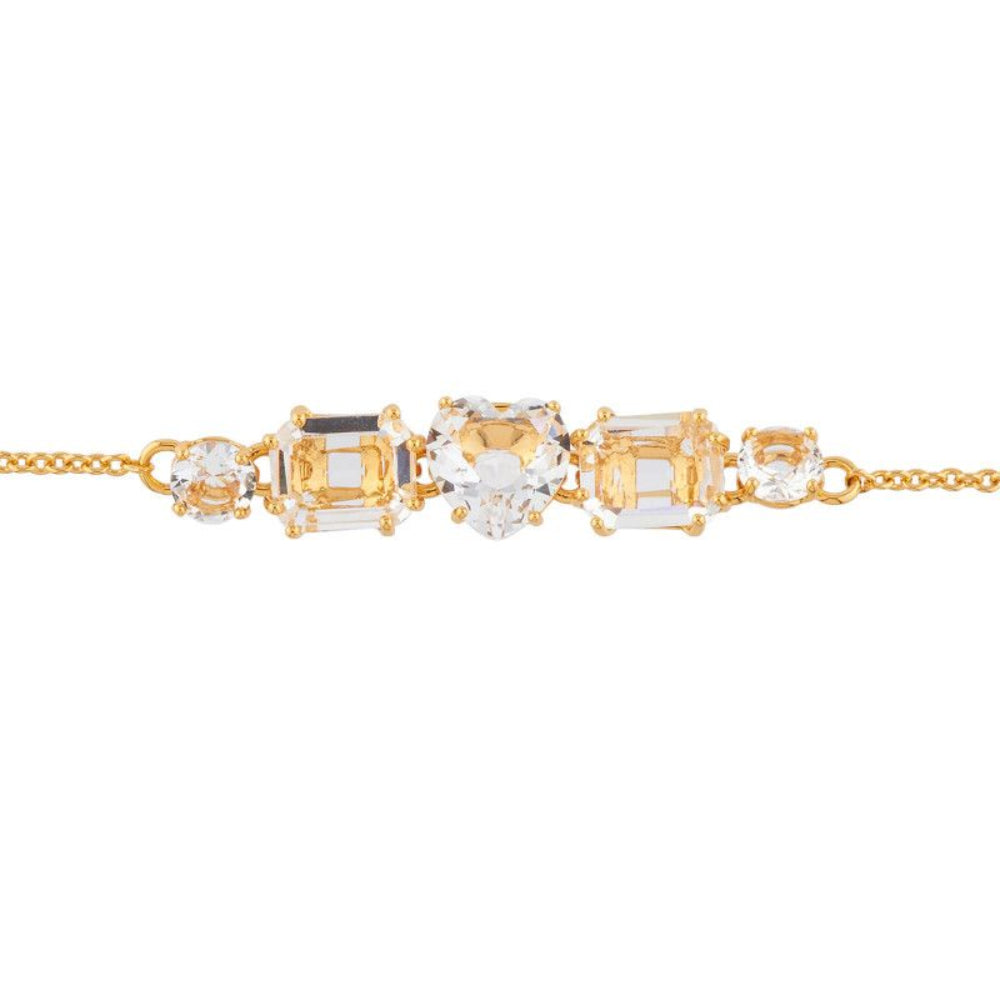 This Bracelet For Women Is Made Up Of Five Crystal Coloured Hand-Carved Glass Stones, Worked In Round, Square And Heart Shapes And Respecting Les Néréides - Paris ' Pure Creation Tradition. This Piece Of Jewellery’ Setting Is Gilded With 14 Carat Gold.