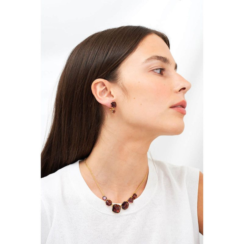 This Long Necklace For Women Is Made Up Of 70 Plum Coloured Round Hand-Carved Glass Stones, Respecting Les Néréides - Paris ' Pure Creation Tradition. This Piece Of Jewellery’ Setting Is Made Up In 14 Carat Gold Plated Brass.