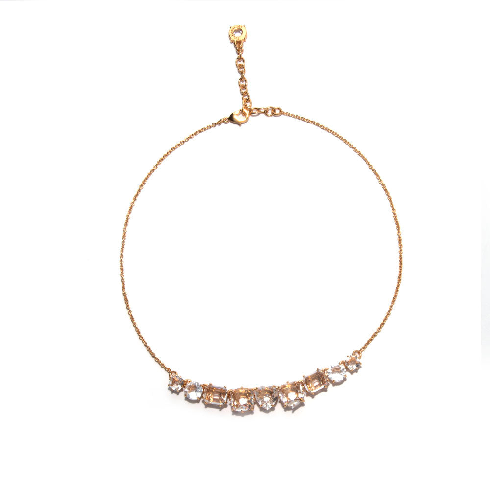 This Necklace For Women Is Made Up Of 9 Crystal Coloured Hand-Carved Glass Stones, Worked In Round, Square And Heart Shapes And Respecting Les Néréides - Paris ' Pure Creation Tradition. This Piece Of Jewellery’ Setting Is Made Up In 14 Carat Gold Plated Brass.