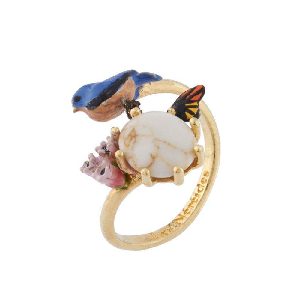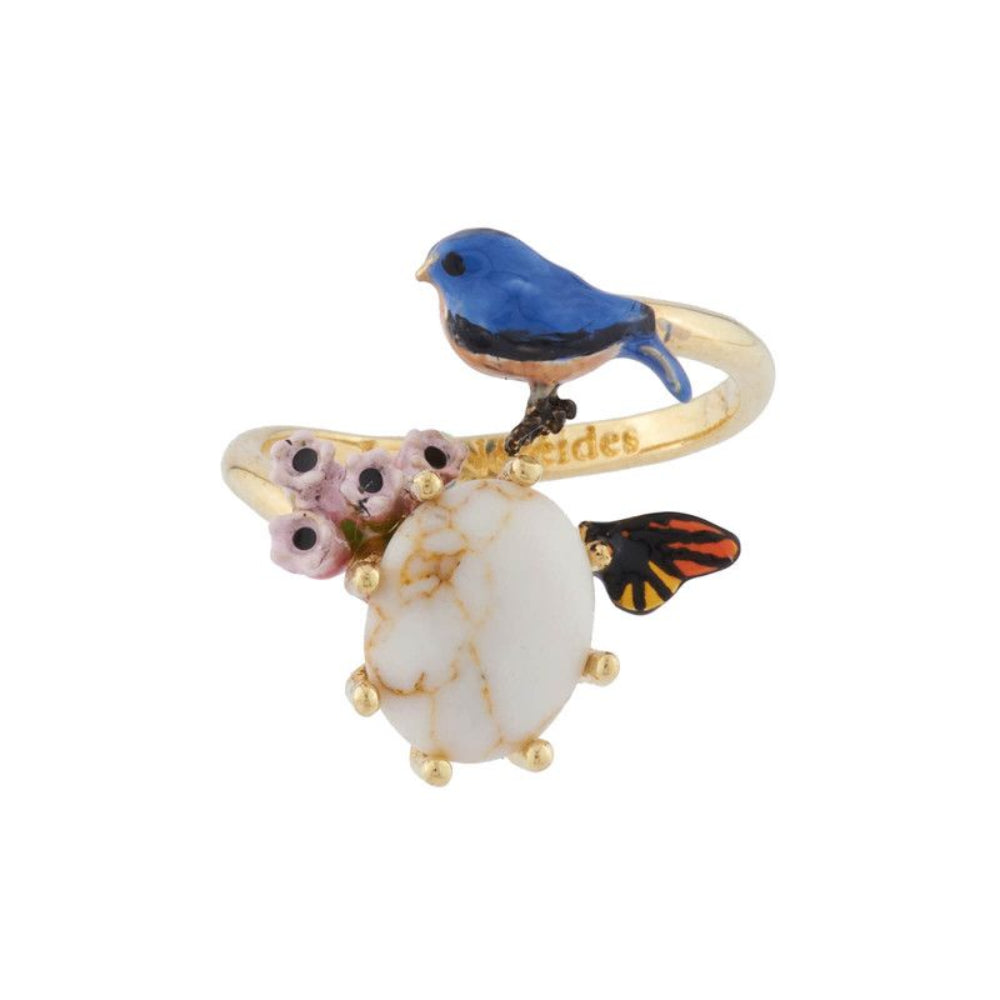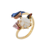 Les Nereides Adjustable Ring With Chickadee And Stone
