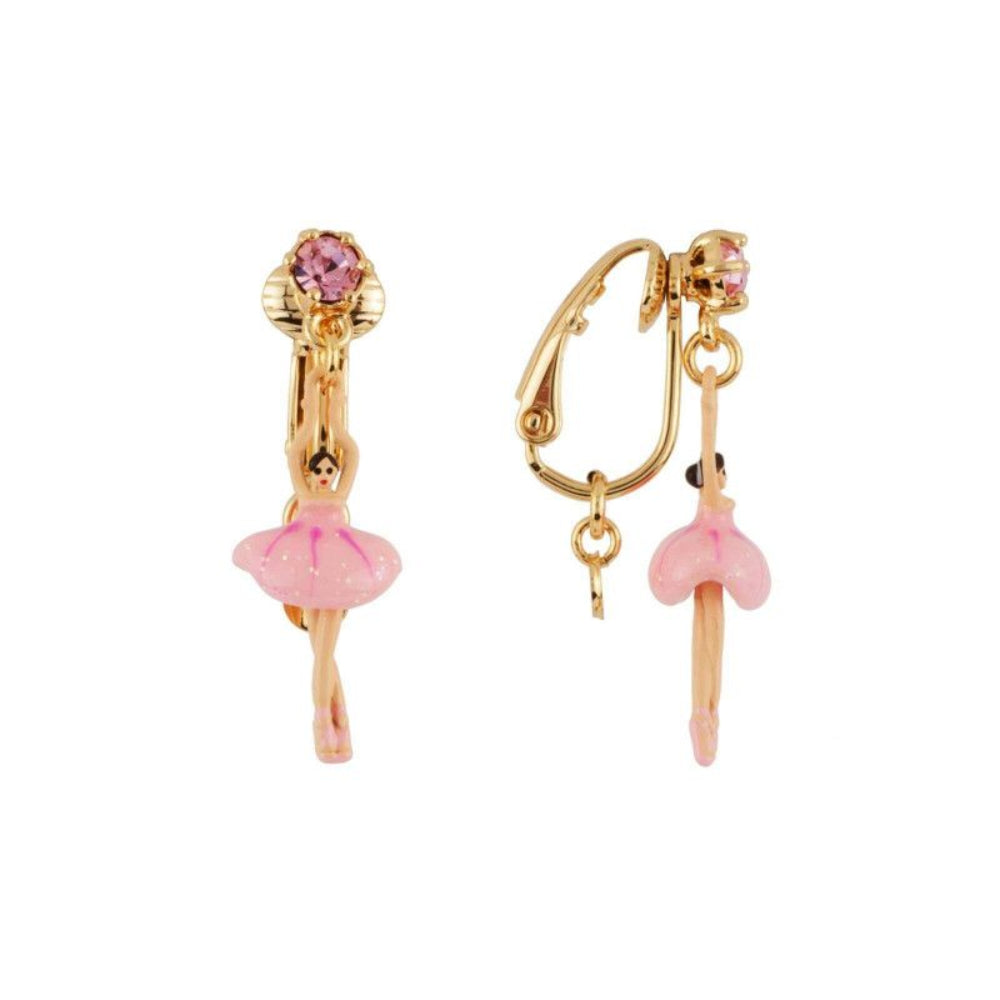 Les Nereides Clip-On Earrings With Mini Ballerina In A Pink Tutu