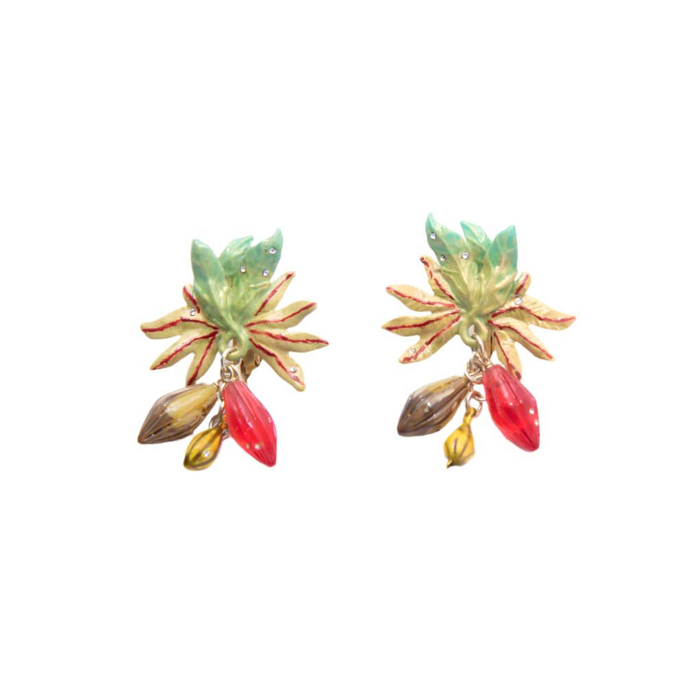 Les Nereides Cocoa Beans Dangling Clip-On Earrings