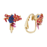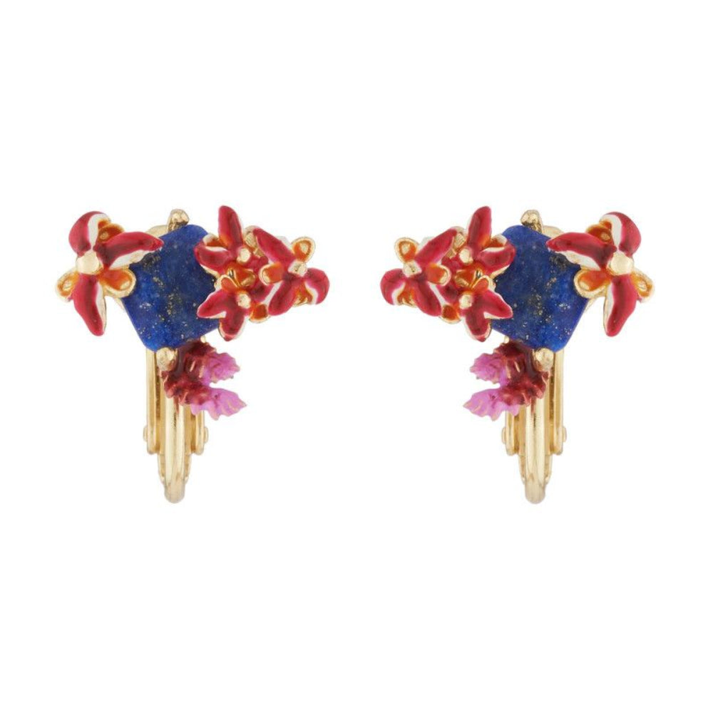 Les Nereides Coral And Exotic Flowers On Natural Stone Clip-On Earrings
