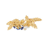 The Cornflower, poppy and cosmos brooch completes the magnificient "Golden Fields" collection. Indigo-blu, vermillon red and bright silver... so is the harmony of colours of this bucolic bouquet, which will undoubtely bring elegance to your jacket or blouse.
