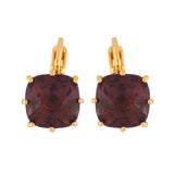 Les Nereides Dormeuses Earrings With Small Plum Square Stone