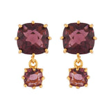Les Nereides Double Square Shaped Plum Stone Earrings