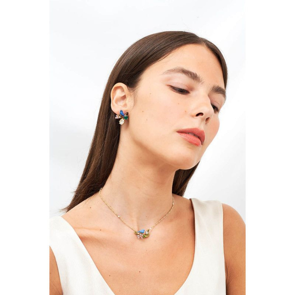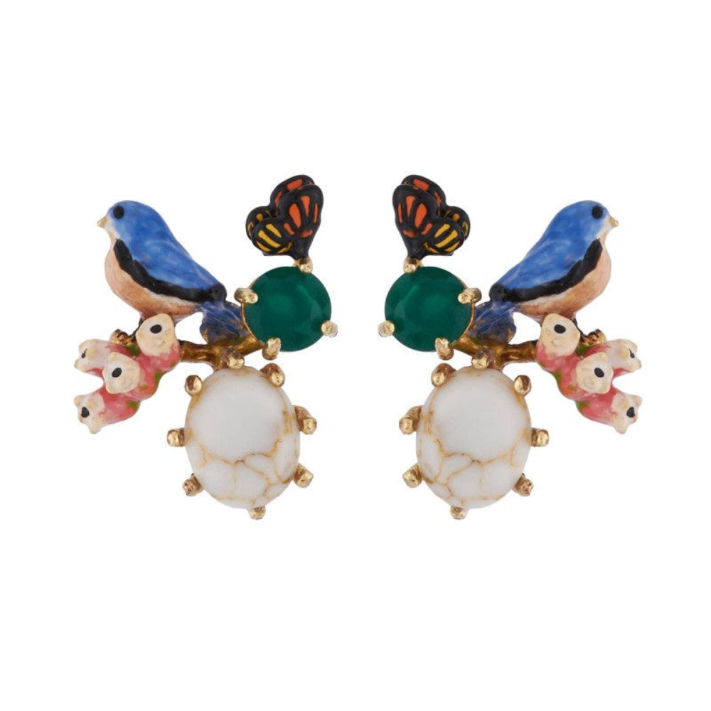 Discover Our Chickadee Bird, Butterfly And Faceted Glass On Stone Earrings ! These Earrings Are Made Up Of 14Kt Gold Plated, Hand Enameled Brass. This Piece Of Jewellery For Woman Is Delicatly Adorned With Natural Stones And Hand Faceted Glass. A Pure And Unique Creation Made By Les Néréides - Paris.