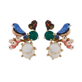 Les Nereides Earrings With Chickadee Butterfly And Faceted Glass On Stone