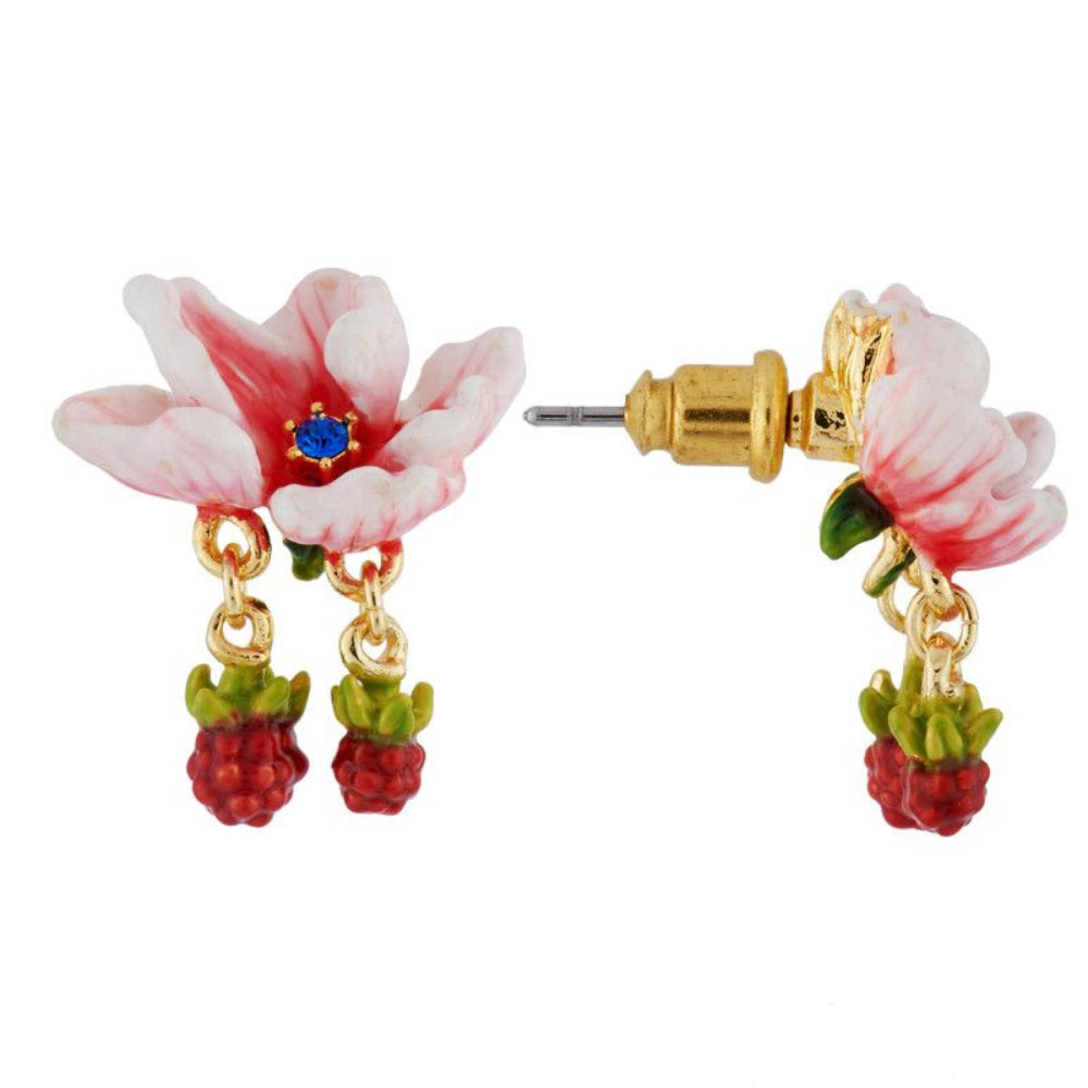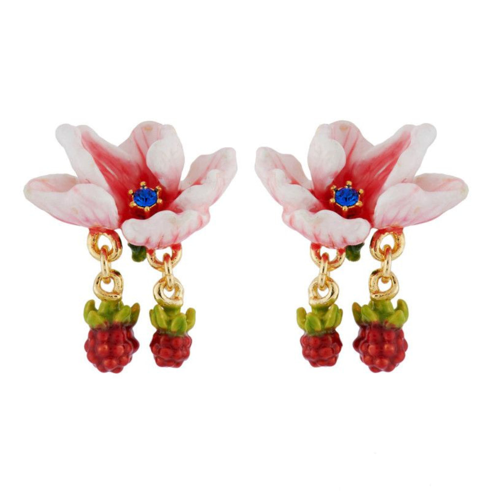 Les Nereides Light Pink Flower And Small Blackberries Earrings