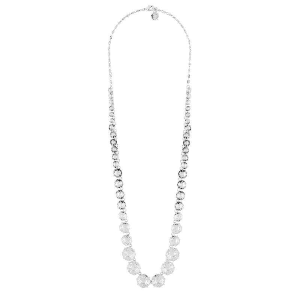 This Long Necklace Are Composed With 44 Round Clear Stones Of Various Sizes Hand-Faceted In The Purest Tradition Of Les Néréides Paris. The Setting And The Chain Of This Jewel For Woman Are Made In Silvery Metal.