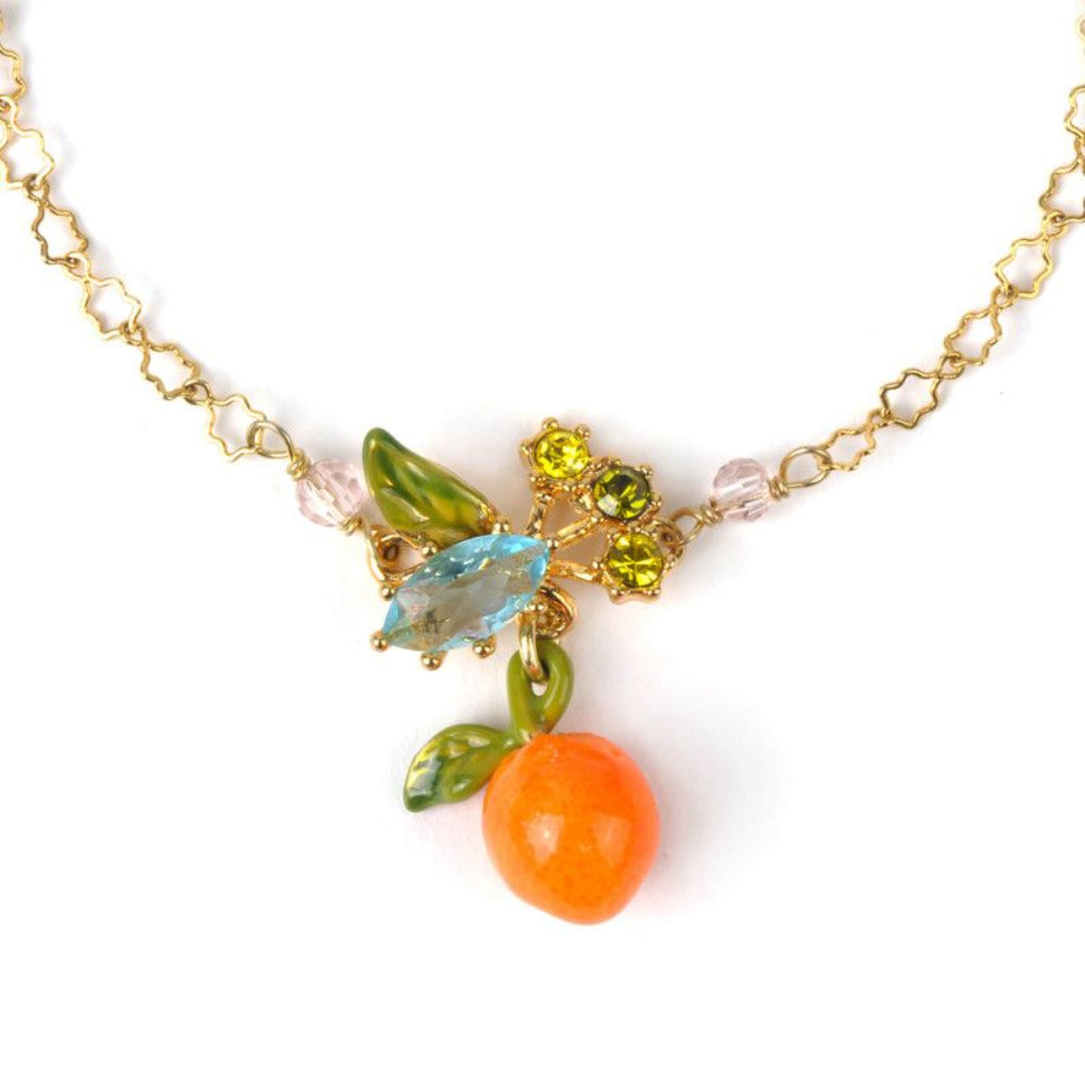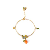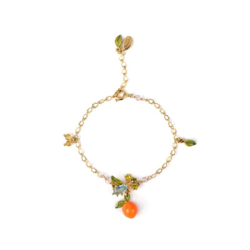 The Delicate Bracelet With A Fruity Bouquet And A Carved Glass Bead From The "Provence Garden" Collection Is The Perfect Stunning Jewel To Go With The Flower Adjustable Ring. Made Of A Brass Chain Gilded With 18 Karat Gold, This Costume Bracelet Is Adorned With Orange Glass Beads And Leafy Pendants. The Essence Of This Jewel Lies At Its Center With The Sky Blue Carved Glass Bead Accompanied By The Fruit Pendant. It Will Fill Your Heart With Happiness Thanks To The Emotions It Will Bring Up As Soon As You Will Put It On...