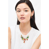 The pomegranate is paved with rhinestones and is hanging from a bouquet of flowers and tropical leaves. A highly detailed and energetic combination which will blow people away. The stud earrings are made of hand-enamelled gold-plated brass and are paved with rhinestones.3.5cm Length Please note stud, hook and dormeuses earrings cannot be exchanged nor returned for hygienic reasons.