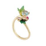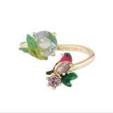 Les Nereides Robin On Its Branch And Carved Crystal Adjustable Ring