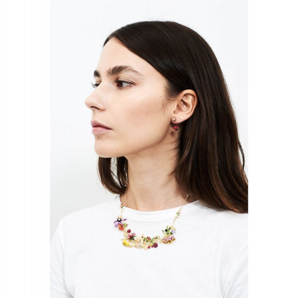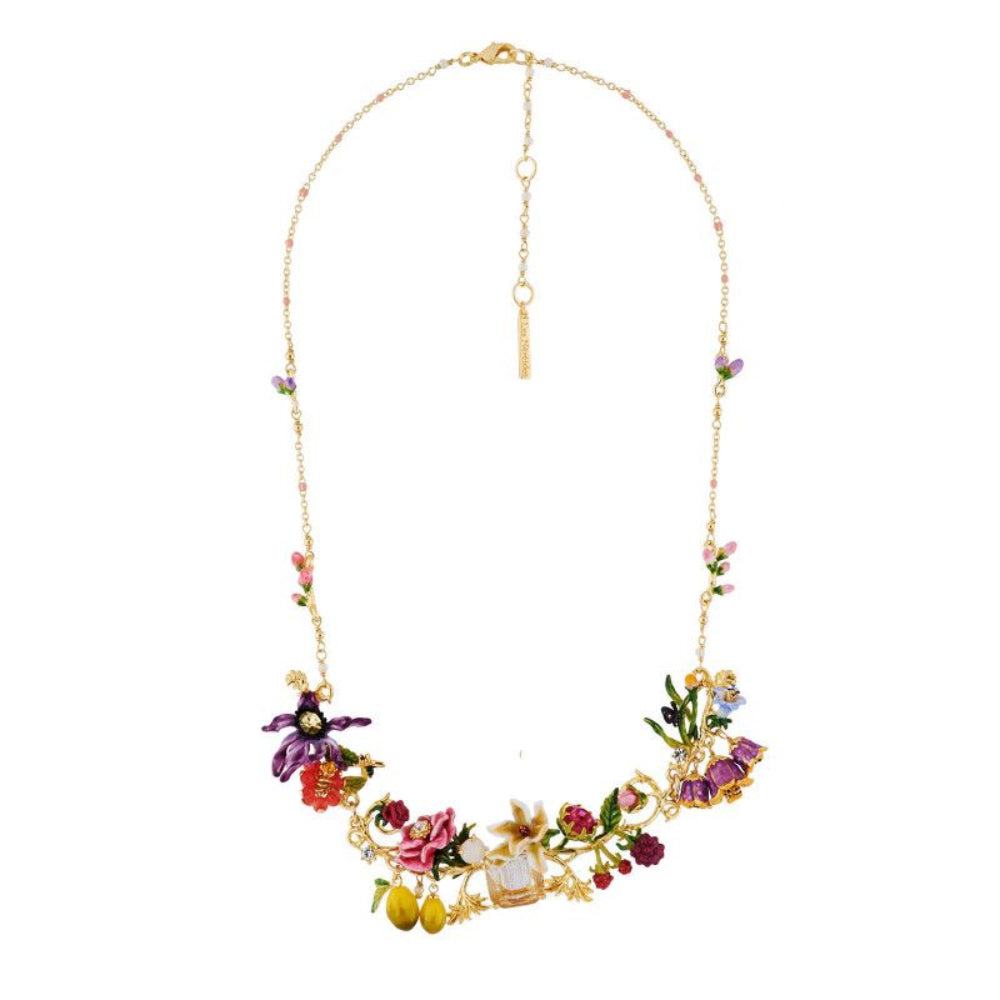 This Piece Of Jewellery Hosts A Walk In The Royal Garden, Hand Carved Glass, Citrus Fruits And Flowers Made From Hand Enamelled Brass In Pure Néréides Paris Tradition. Rhinestones, Tassels, And Fantasy Pearls Bring A Touch Of Femininity And Delicateness To This Garden. The Chain Is Made Of 14 Carat Gold Plated Brass.