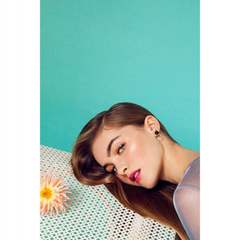 One will surely be seduced by the harmonious shades of pink of these stud earrings with ring. Pink rhinestones adorn the thin ring and the upper part of the earrings shows a rhinestone and a pink quartz stone. These stud earrings for woman are made up of brass, gilded with 18 karat gold. Please note stud, hook and dormeuses earrings cannot be exchanged nor returned for hygienic reasons.