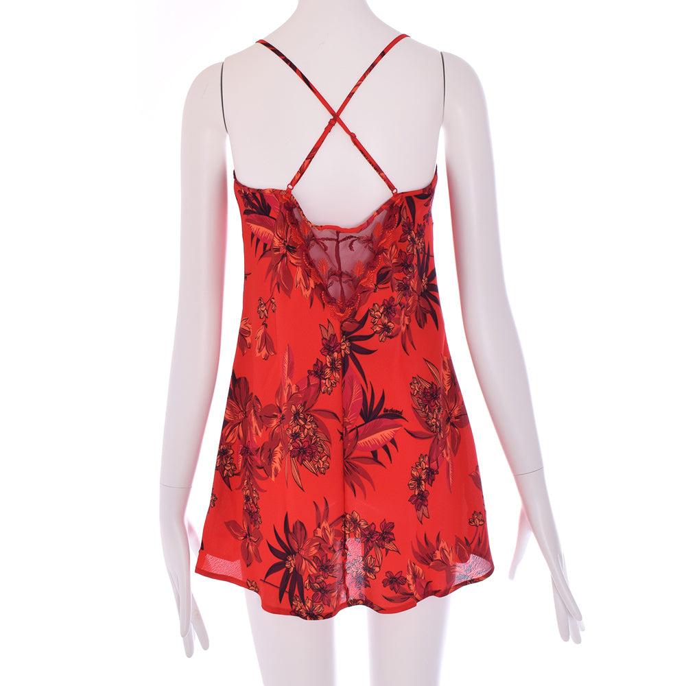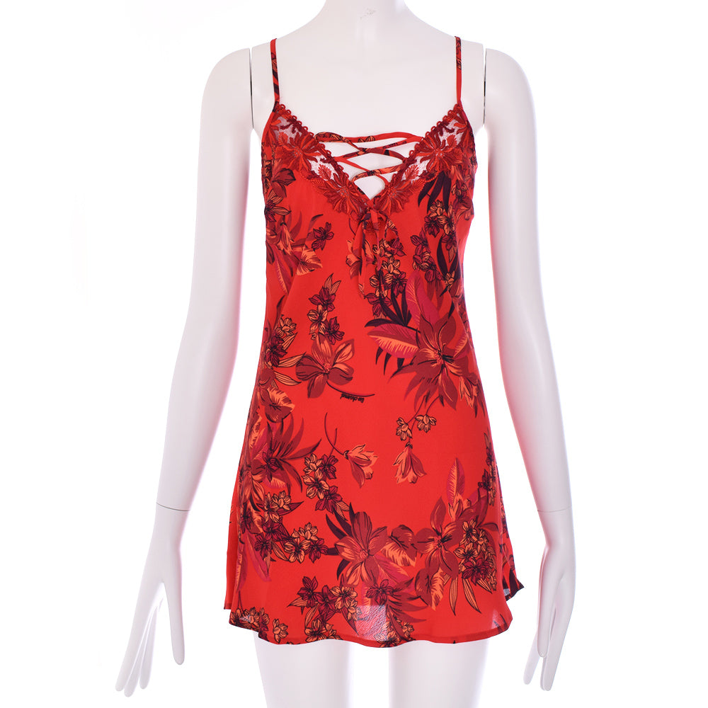 The short dress is adorned with extremely artfully embroidered tulle on the cutouts. This floral pattern also picks up on the printed fabric, which falls wonderfully and gently flows around the silhoutte. .