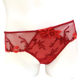 Dare to be elegant with the shorty. Fleur Aphrodite red while embroidering guipure effect, on a red tatoo tulle which brings a maximum of transparency. this technique allows for a very tight and dense stitching, to give materiality to the patterns: the patterns are thus highlighted and like 3 daimnations way.