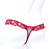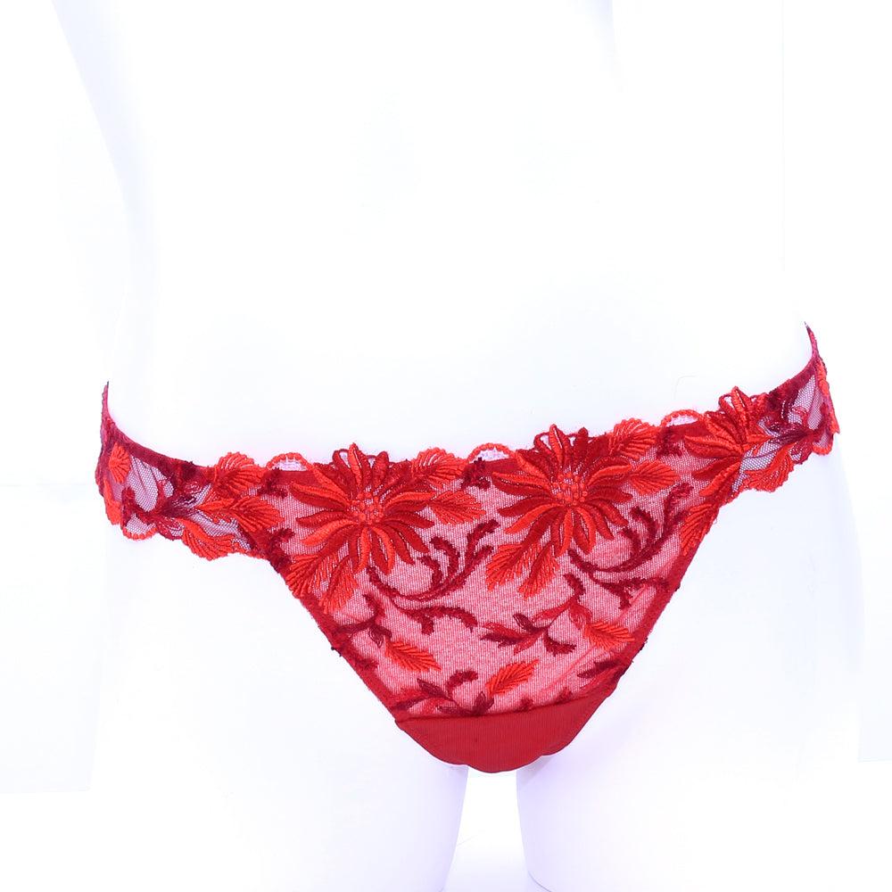 The thong that features an embroidered and lined front decorated with a guipure pattern. The fine tissues lie flat against the skin. The look of this seductive luxury lingerie leaves no one unmoved.