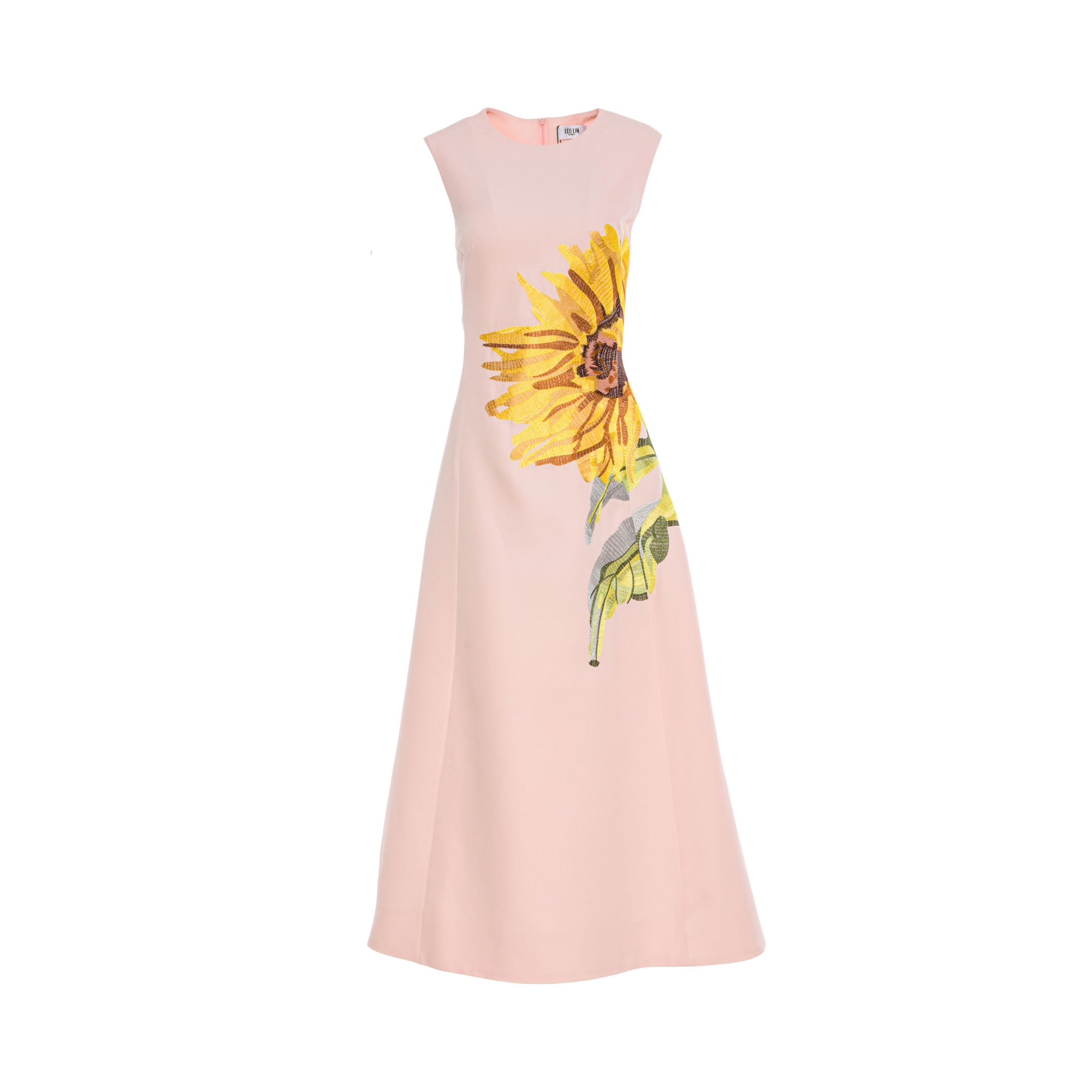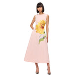 Step into summer with the Leo Lin Women's Sunflower Print Dress! This beautiful and unique midi dress features a sunflower placement print in pink on a precious white base. It has an exclusive Leo Lin embroidered logo, giving it a premium touch. With a high round neckline and fitted waist, it is designed to flatter your figure and with its A-line silhouette, it will flow gracefully with every movement. An invisible back zip closure ensures the perfect fit every time. It is fully lined for a luxurious touch and added comfort. Perfect for any summer occasion, the Leo Lin Women's Sunflower Print Dress is sure to turn heads wherever you go! SPECIFICATIONS