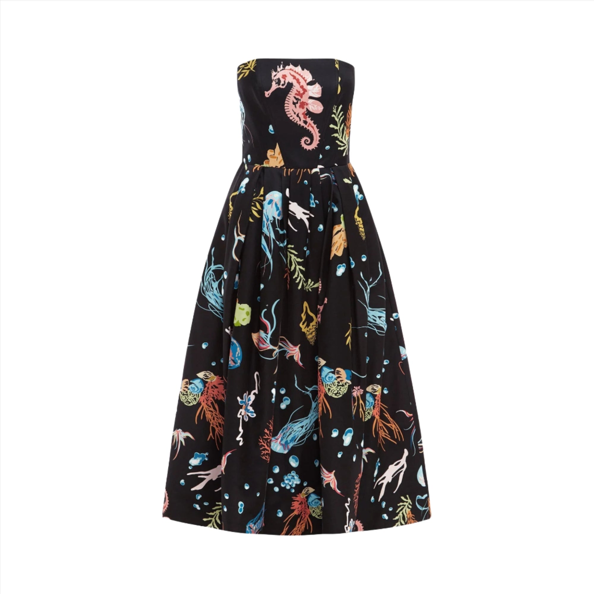 Leo Lin Women's Leanne Bustier Midi Dress Twilight Print in Black