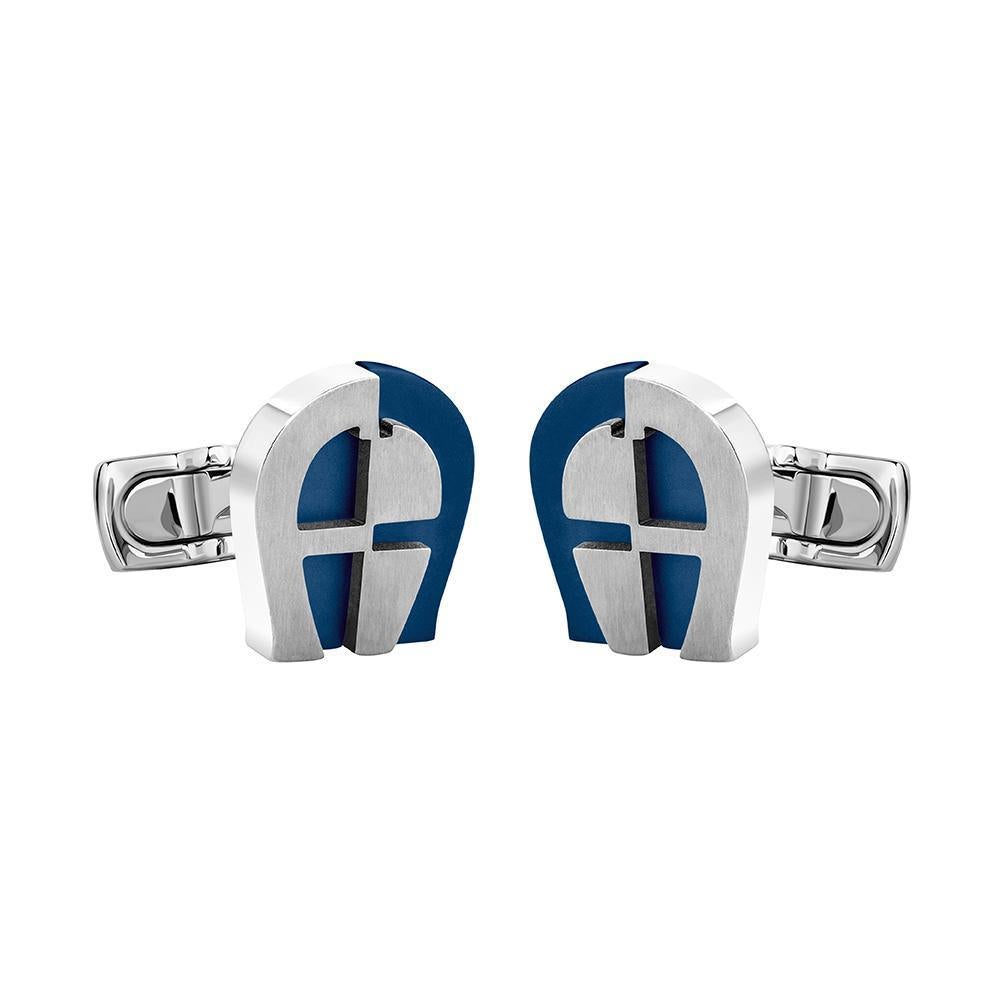 Aigner Cufflinks Stainless Steel Silver Blue Polished Horseshoe A Logo Mono