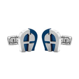Aigner Silver And Blue Polished Horseshoe A Logo Cufflinks