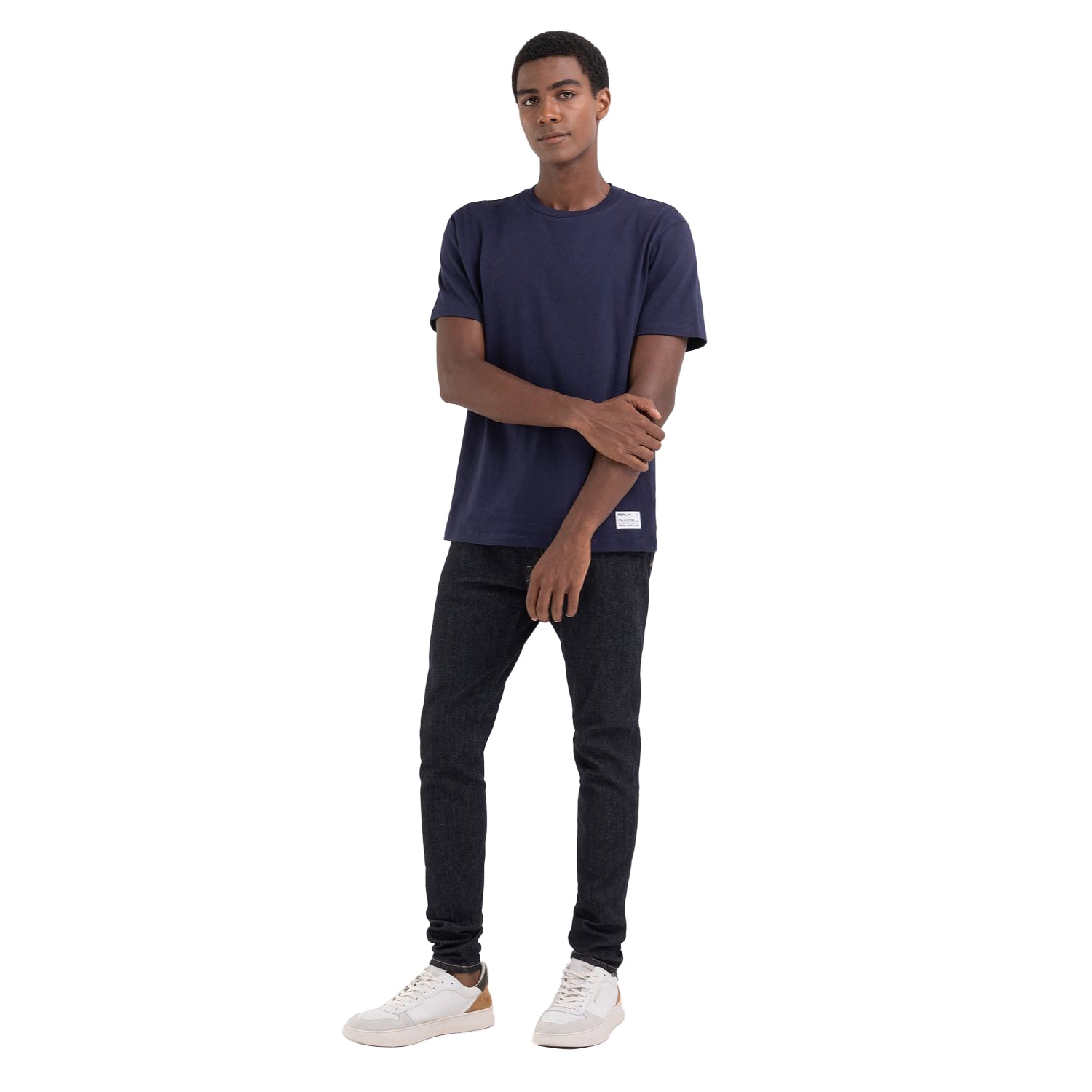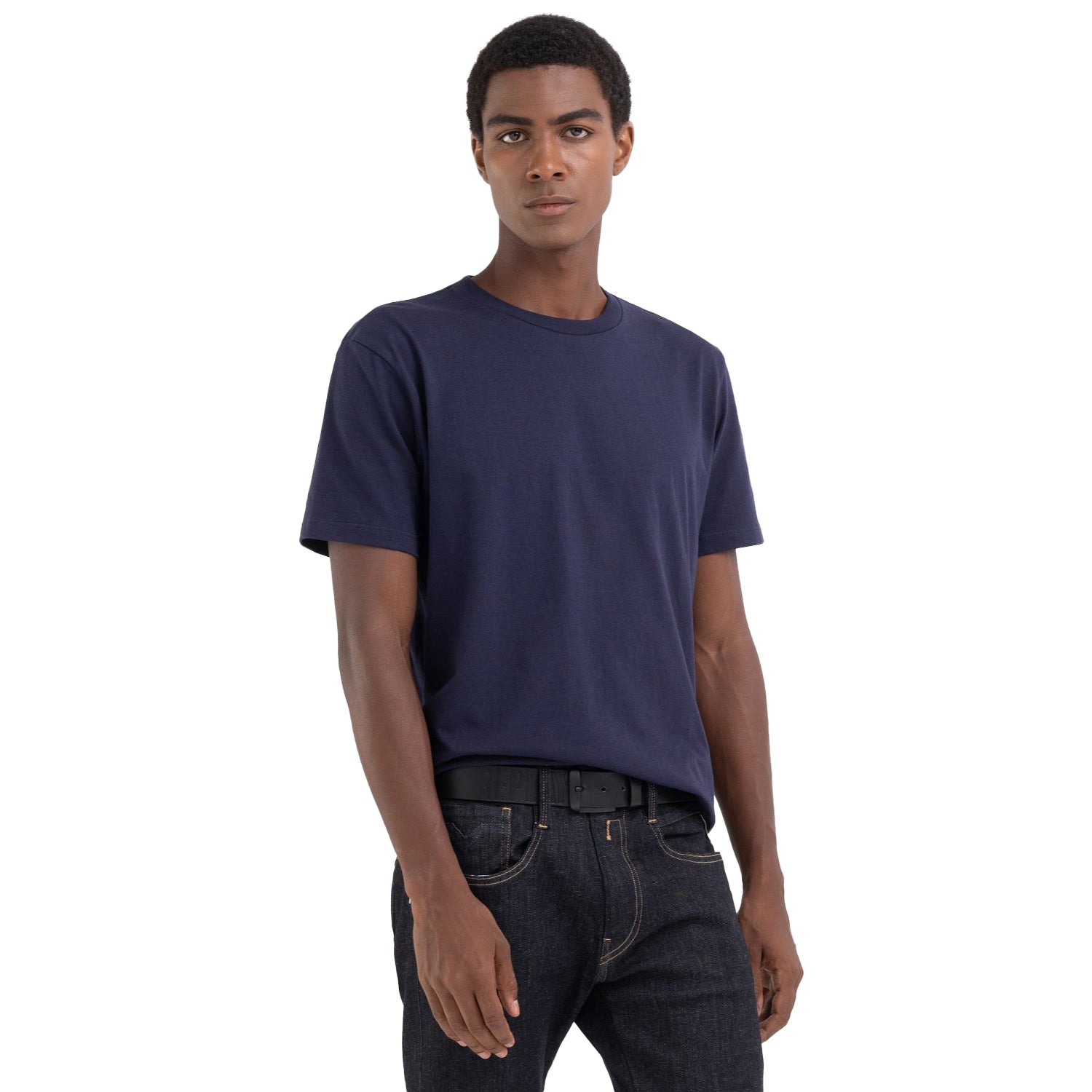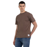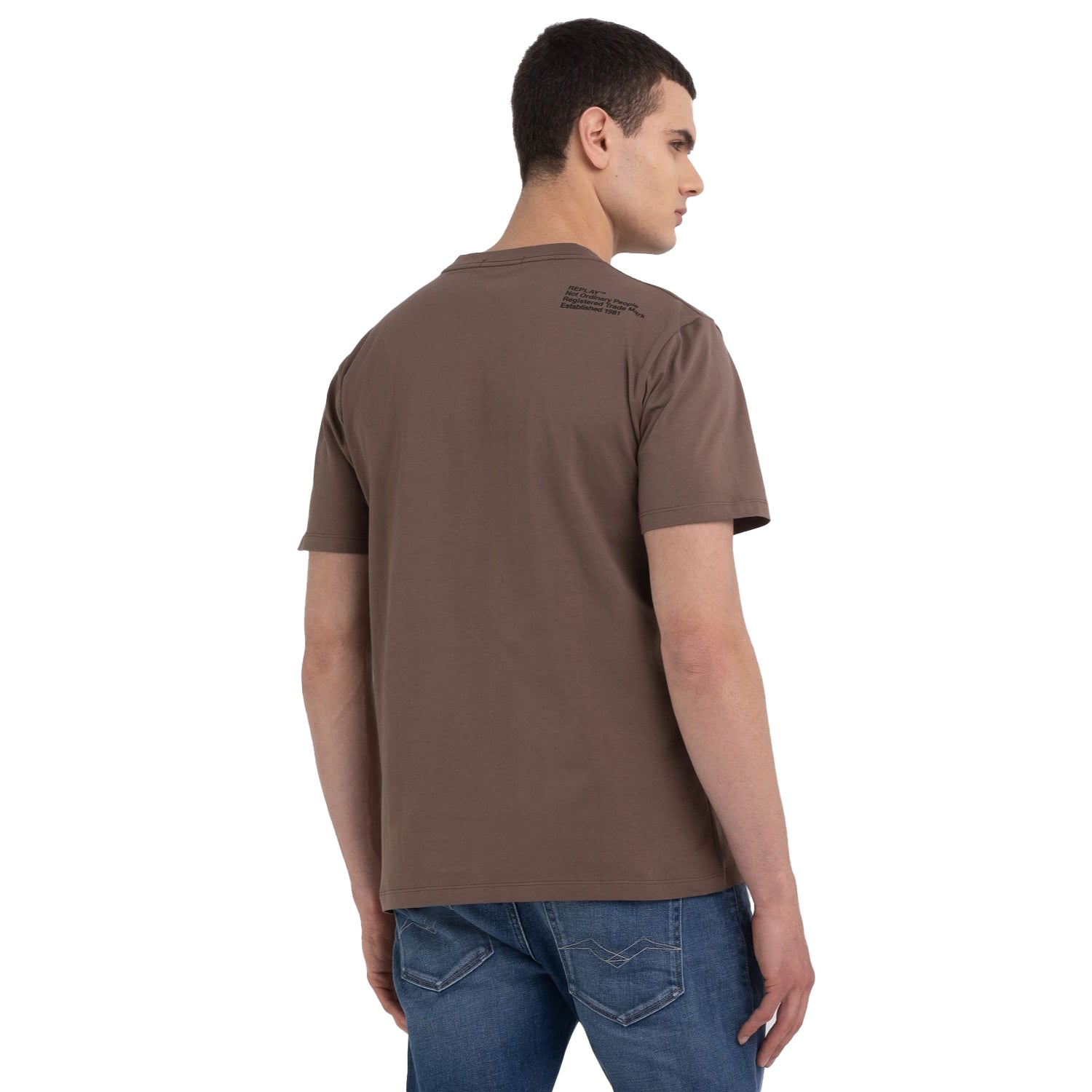 Crewneck t-shirt made of piece-dyed heavy cotton jersey. The short-sleeved garment with regular fit is characterized by the customized micro print at the back.