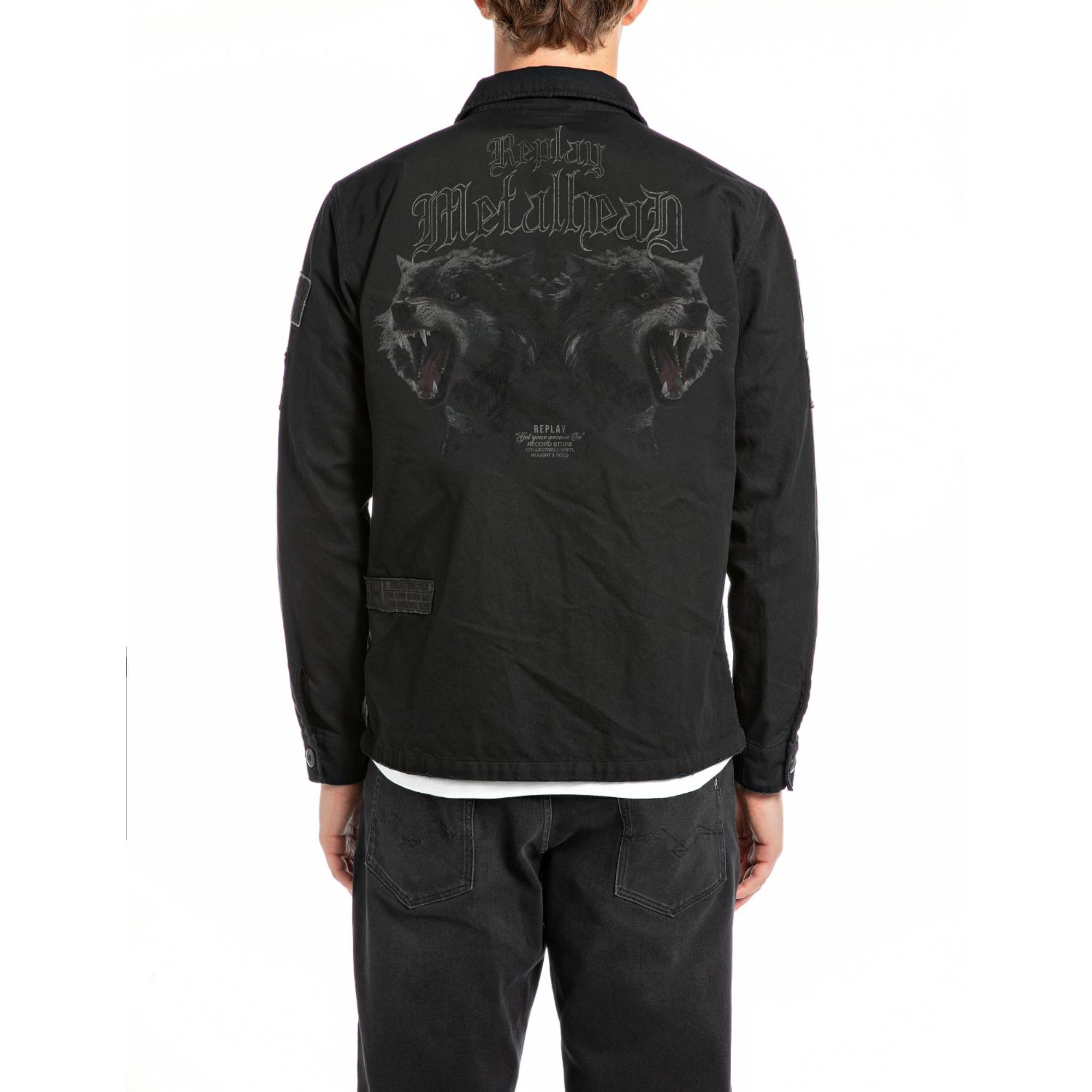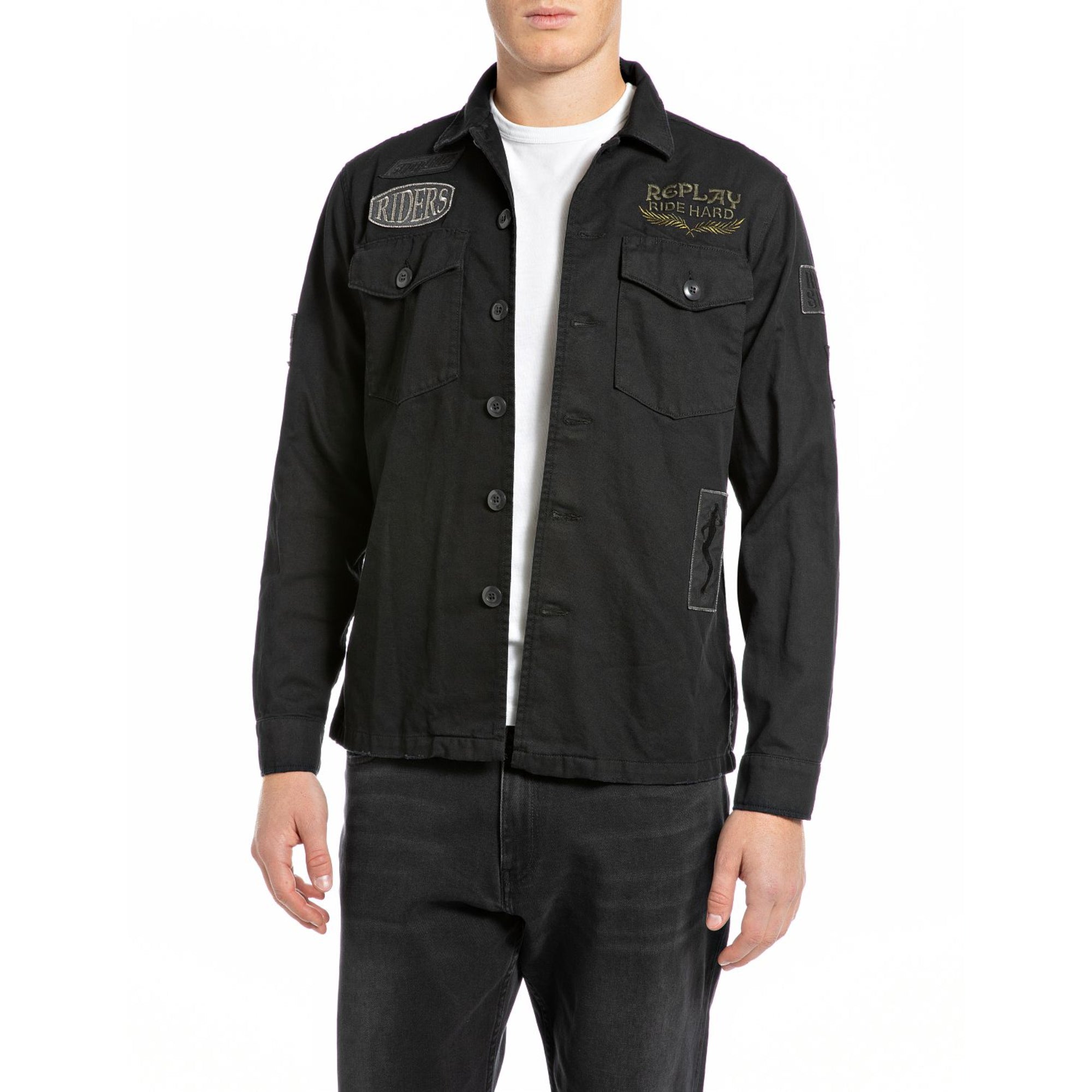 Replay Men's Shirt Jacket With Lettering and Appliques